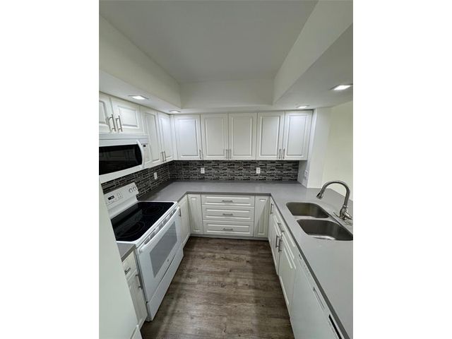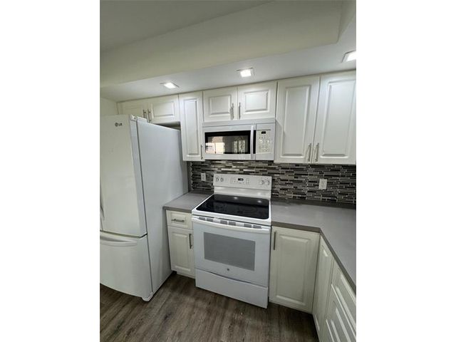 Enjoy resort style living in this beautifully upgraded 1 bedroom 1.5 bathroom condo! A completely open kitchen concept which over looks the living and dining areas, great for hosting or watching your favorite show while you cook. Enjoy your morning coffee sitting out in the screened balcony facing the park. This unit is meticulously maintained with newer appliances, huge pantry, updated electrical panel, in-unit washer & dryer, tons of storage space, AC that is less than 5 years old. Century Village Amenities include: Free shuttles, pickleball courts, 5000 sqft clubhouse, theater, ballroom, indoor and outdoor heated pools, gym, sauna, billiards, arts & crafts classes, tennis, shuffleboard, bocce, golf course and 24/7 security.