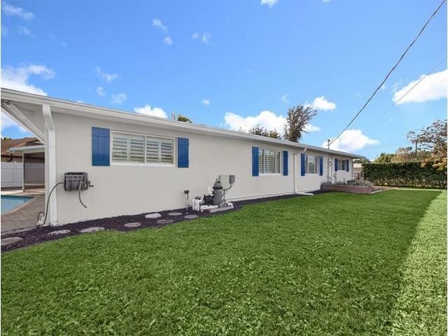 Situated on a prime corner homesite in the coveted Lake Clarke Shores community, this exceptional residence offers refined living with no HOA. Thoughtfully updated and truly move-in ready, the home features a brand-new roof, hurricane impact windows and doors, and sophisticated modern finishes throughout. Recessed and designer LED lighting accentuate the light-filled interiors, while elegant plantation shutters provide a timeless architectural touch. Outdoors, an inground pool built in 2022 and surrounded by lush, mature landscaping, creating a private oasis ideal for entertaining or quiet relaxation. A grand circular driveway enhances curb appeal and provides generous parking.