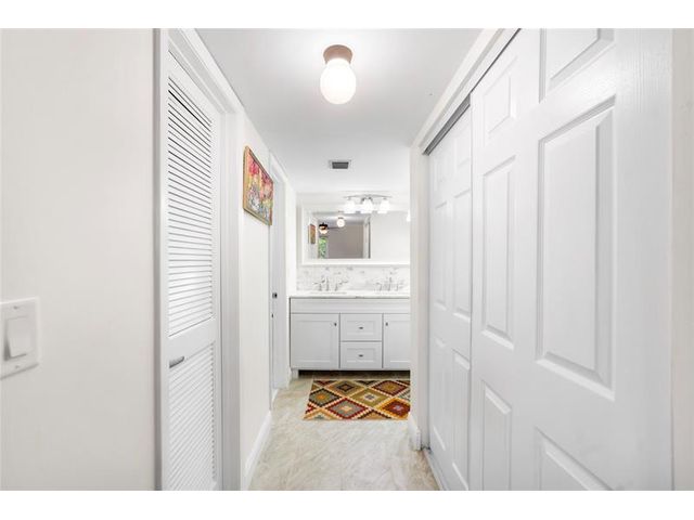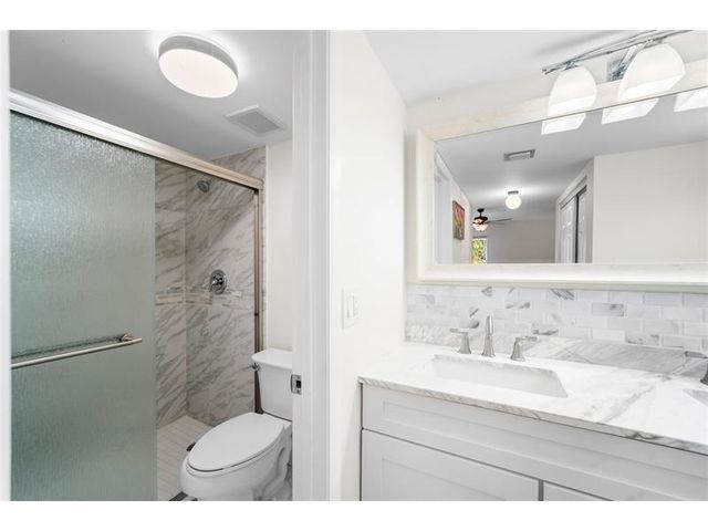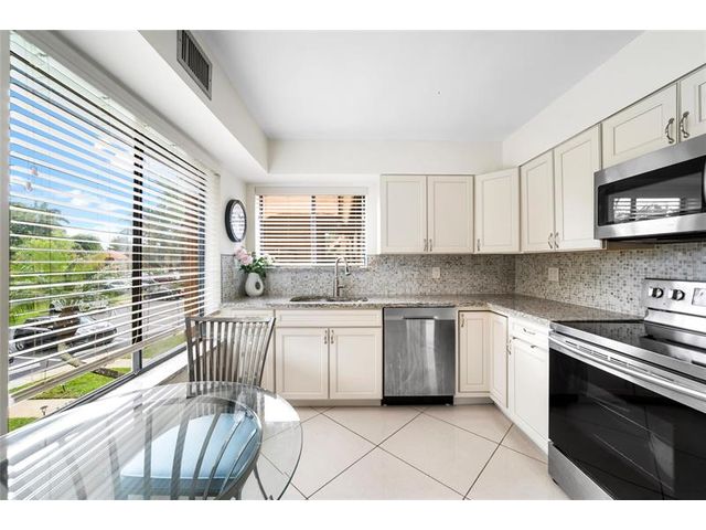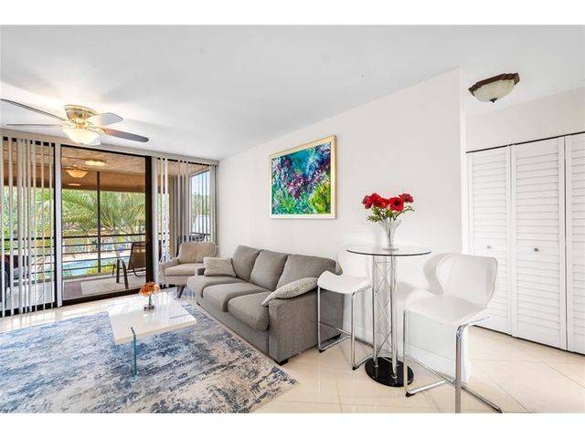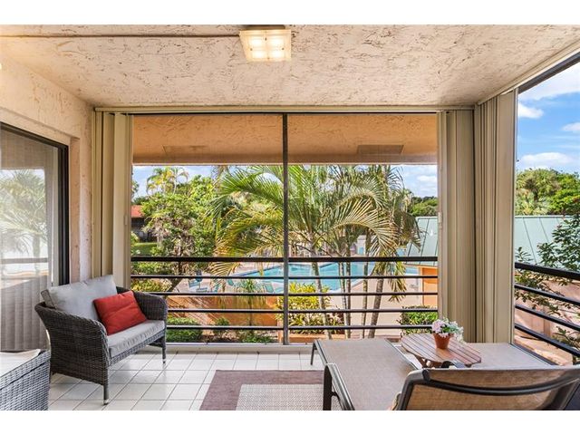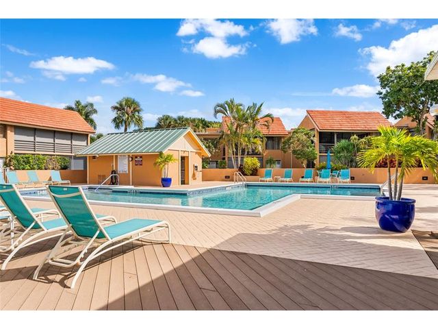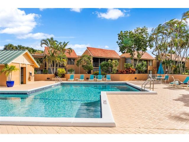Completely remodeled 2BR/2BA CORNER condo in the desirable 55+ Green Lakes community at Indian Springs Country Club - a gated NON-mandatory membership golf community with no club fees. This light-filled second-floor unit offers serene pool views and lush tropical surroundings. Features include new tile flooring throughout, smooth ceilings (no popcorn), and a beautifully updated kitchen with white cabinetry, granite countertops, glass tile backsplash, and stainless steel appliances. Both bathrooms are fully renovated with modern finishes. Enjoy added privacy as a corner unit plus resort-style living close to shopping, dining, and beaches. Move-in ready!
