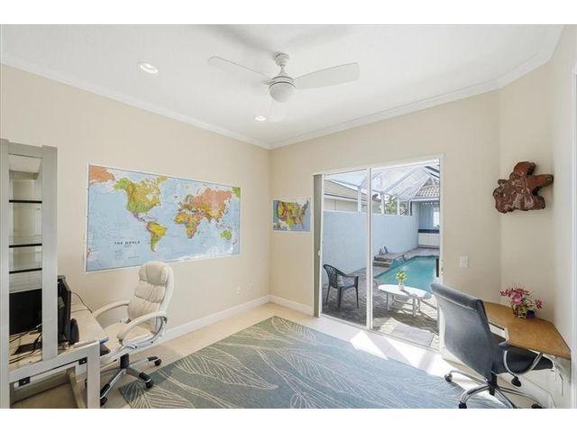 Experience the ultimate coastal lifestyle in this stunning 3BR/3.5BA courtyard pool home, perfectly situated on an extended lot just steps from Pepper Park, the Navy SEAL Museum, and private beach access. This unique property offers a rare blend of river and ocean living with available boat slips and a private walkway leading directly to the sand. The heart of the home is a secluded, screened-in courtyard featuring a private pool, summer kitchen, outdoor shower, and a dedicated pool bath, making it an entertainer's dream. Inside, the residence exudes elegance with volume ceilings, crown molding, tile flooring, and plantation shutters throughout