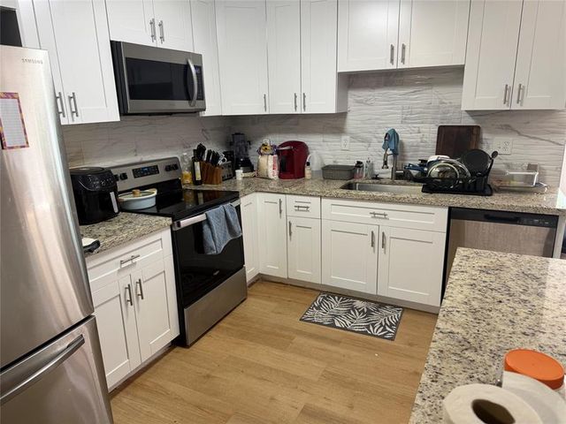 Spacious 3-bedroom, 2-bath fee-simple townhouse in North Lauderdale Village offering 1,486 sq ft of living space. Bright open layout with tile and wood flooring, updated kitchen with stainless steel appliances, and generous living and dining areas. One bedroom and full bath conveniently located on the main level, with primary suite upstairs featuring walk-in closets. Enjoy a private fenced patio, impact windows, and two or more parking spaces. No HOA or maintenance fees. Great opportunity for end users or investors alike. Tenant occupied. 24 hour notice to show.