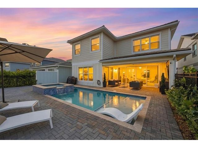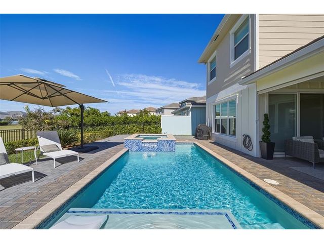 Former GL model home featuring an impressive array of upgrades throughout. The chef’s kitchen is a true showpiece with upgraded appliances, cabinetry, designer decorative backsplash, and a chimney hood accented by custom cabinet panels wrapping the island. A spacious loft/game room is ideal for entertaining. The primary bath offers a large soaking tub, and the 3-car garage includes sealed flooring and insulated doors. Outdoors, enjoy a private oasis with a custom heated pool, spa, sun shelf, and extended patio. Conveniently located near a cul-de-sac. Experience Arden’s unique farm-to-table lifestyle with a manned gatehouse, fitness center, 20 miles of trails and lakes, resort-style amenities, clubhouse, pools, and top-rated schools, including Saddle View Elementary opened 2025.