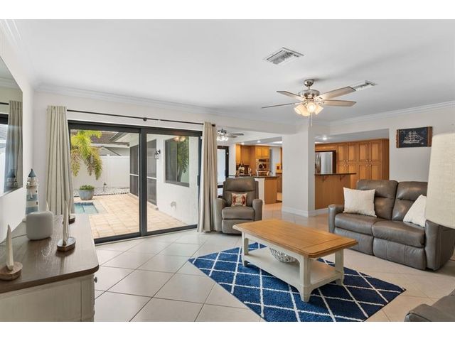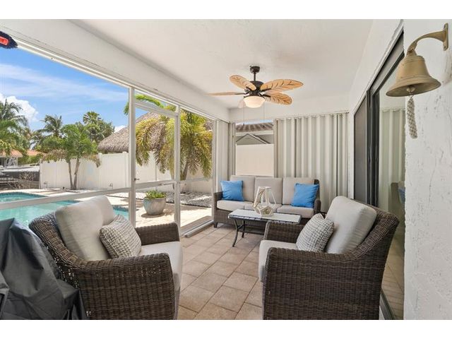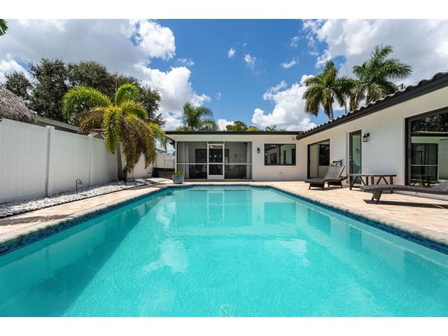 Waterfront living in the highly desirable Landings waterfront neighborhood! This 3 bedroom, 2.5 bath home offers 100’ of water frontage with two fixed bridges, a brand-new roof, and impact windows & doors. The eat-in kitchen with granite counters overlooks the pool and water views enjoyed from the kitchen, living, dining, and primary bedroom. Other upgrades include a newer Trex dock, new seawall footers, new electrical panels, a whole-house surge protector, and screened patio surrounded by tropical landscaping and fruit trees. Located on a quiet cul-de-sac just minutes from top schools, shopping, dining, and beaches!
