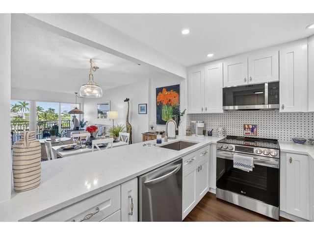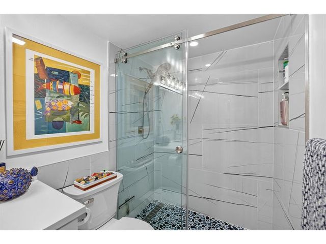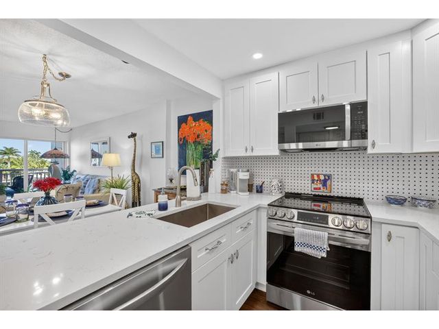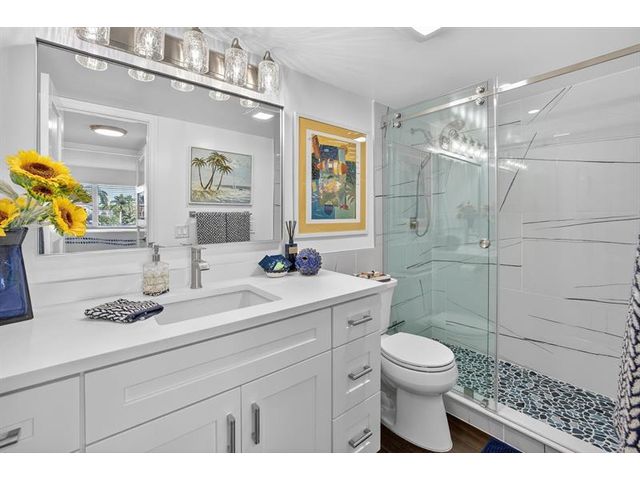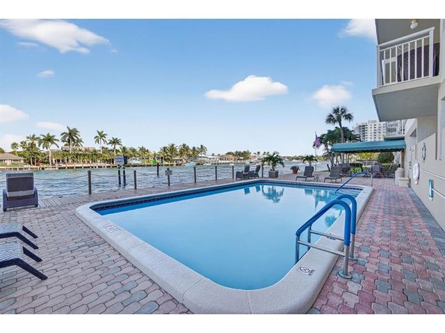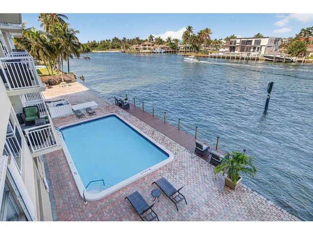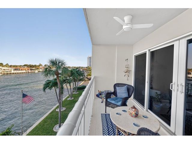 Unobstructed wide Intracoastal views with rare north and south exposure anchor this fully renovated 1-bedroom, 1-bath residence in the heart of Pompano Beach. The open concept layout captures abundant natural light and uninterrupted water sightlines from both the living area and bedroom. Designer kitchen features quartz countertops, stainless steel appliances and two generous pantries. Waterproof luxury vinyl flooring throughout. Italian marble shower with frameless glass doors. Ample closet space plus additional assigned storage. Laundry located just outside unit. Bicycle and kayak storage available. Building has passed its 40/50 year inspection with no special assessments and strong HOA reserves. Sundeck, club room and private beach access. 2025 taxes 3,116.