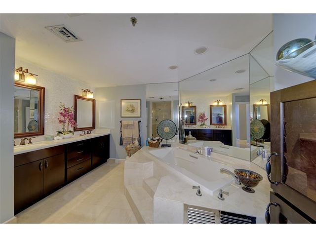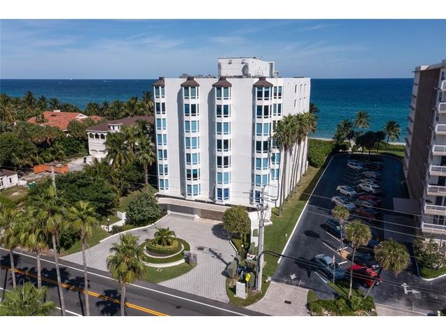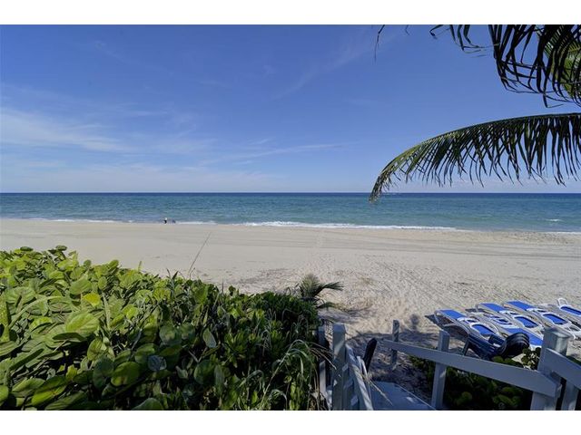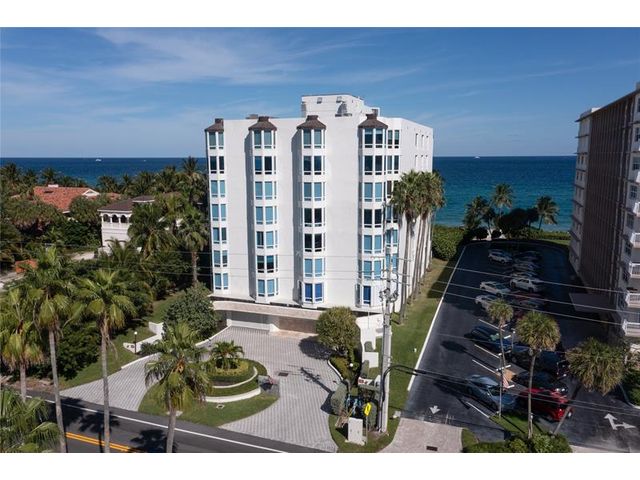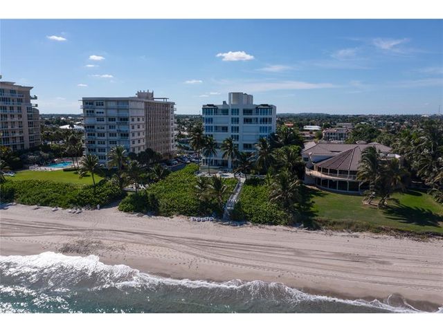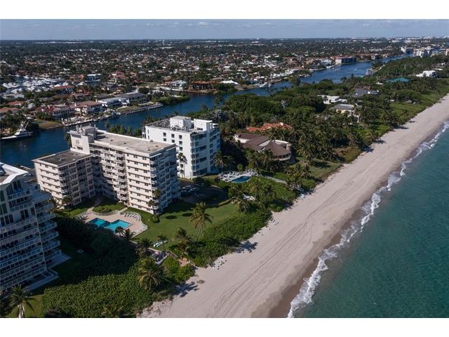 Financially stable building with reserves and fees that have actually been reduced!! This expansive first-floor residence lives more like a single-family home right on the sand. Ideally situated on the prestigious Hillsboro Mile, it offers just under 4,000 square feet of luxurious living space under air. Featuring 3 bedrooms, 3.5 baths, a den, living & family room, formal dining area, and 2 deeded parking spots, this home exceeds expectations at every turn. Enjoy breathtaking ocean views from living spaces and watch boats glide along the Intracoastal from the spacious primary suite w/generous sitting area. Only 13 residences in this boutique building, each a corner unit spanning the entire width from front to back, you’ll enjoy abundant natural light and spectacular views throughout.