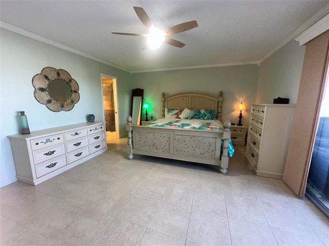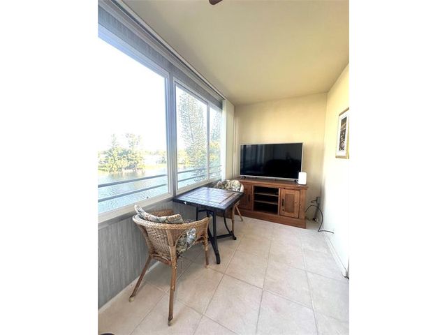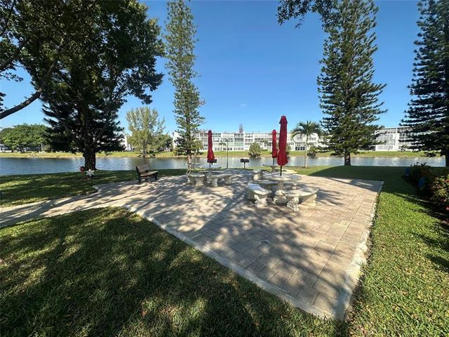 BEAUTIFUL LAKE VIEW from this immaculate 1 bedroom, 1.5 bath condo, 4th flr in a well-maintained bldg. This beautifully furnished residence features a lovely galley kit w/white appl & under/over cab ltg. Tile flrs flows thru-out, complemented by crown molding & ceiling fans in every room for added comfort. Nicely updated bathrms w/tub/shower combo & tiled walls in primary. Enjoy the encl patio w/Plexiglass windows perfect for relaxing while overlooking the gorgeous UNOBSTRUCTED WATER VIEW! Active adult gated comm, 24/7 security, free busses, pools, tennis, pickleball, putting green, cafe, Clubhouse w/gym, theater, movies, classes, clubs & more! Prime loc just a short walk to the clubhouse. Close to shopping, dining & the beach! Ideal for enjoying the BEST OF CONDO LIVING. ASSOC. CLAIMS 55+