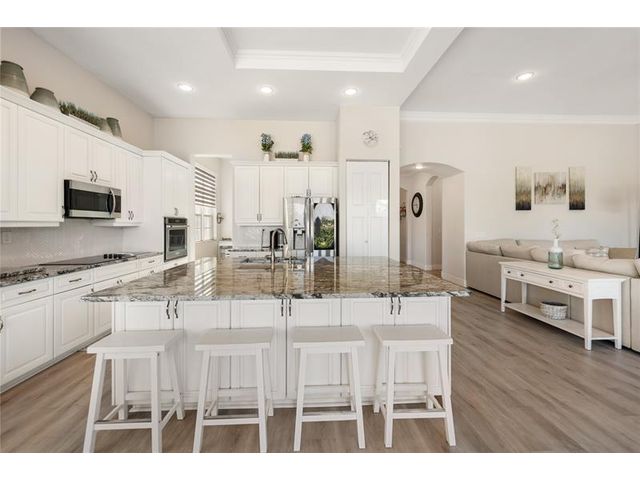 STUNNING!! Fully remodeled waterfront home on an oversized 1/3 acre Cul de sac lot one of the best in Heron Bay. Open concept layout with designer kitchen featuring oversized island, custom cabinetry, stainless appliances, and pantry, all with stunning lake and pool views. Luxurious primary suite offers water views, dual walk-in closets, and spa style bath with quartz vanities, Roman tub, and oversized shower. Heated pool with sun shelf, surround sound, accordion shutters, and expansive fenced yard. Exceptional views, massive lot, amazing for entertaining. DO NOT miss your chance to make this house your home!