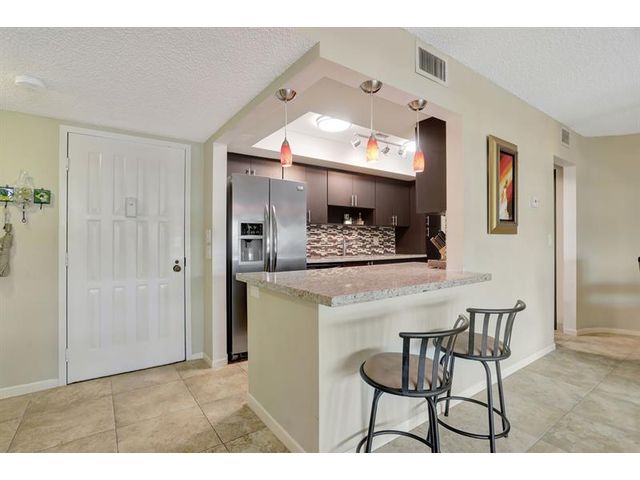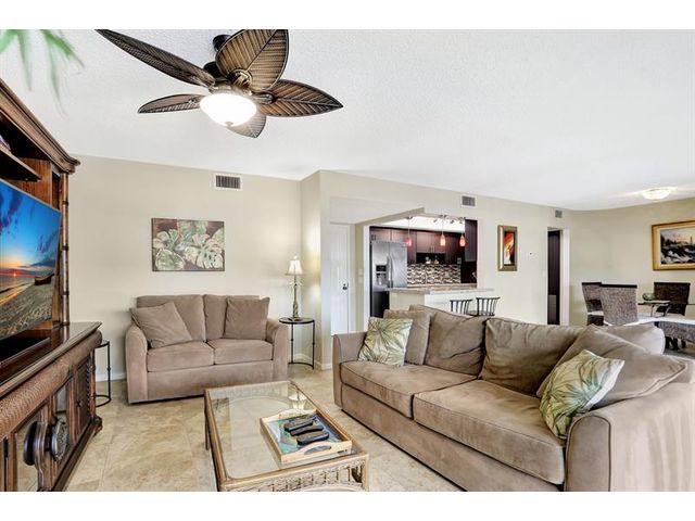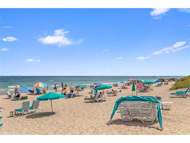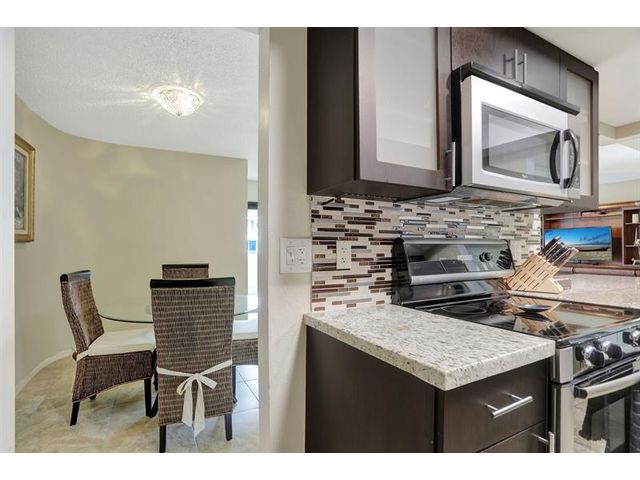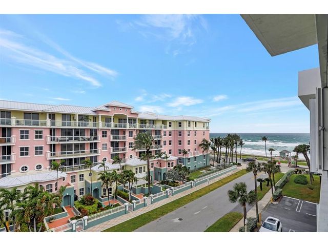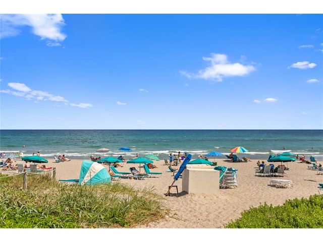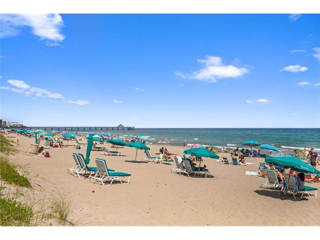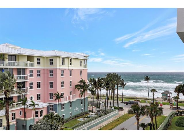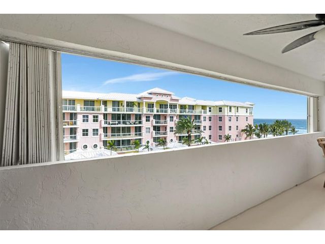 Penthouse Corner Condo with Ocean Views! Over 1200 total sq ft in this 1 bedroom 1.5 bath on 5th floor. Updated Kitchen with Granite Countertops & Stainless Appliances, Tiled flooring in Living Area. Hurricane Impact Windows & Sliding Doors plus Shutters. Plantation Shutters in bedroom. Washer & Dryer in Condo! Huge Covered Balcony! One Small Pet up to 15 lbs permitted! Lease Immediately No waiting 2 times a year with a 90 day minimum. Just blocks to Deerfield Beach Fishing Pier, Restaurants & Shopping. Resort Style Living with Pool, Hot Tub, Barbecue, Sauna & Community Room. This floor plan allows Living Area to be reconfigured to add a den and a full bath.