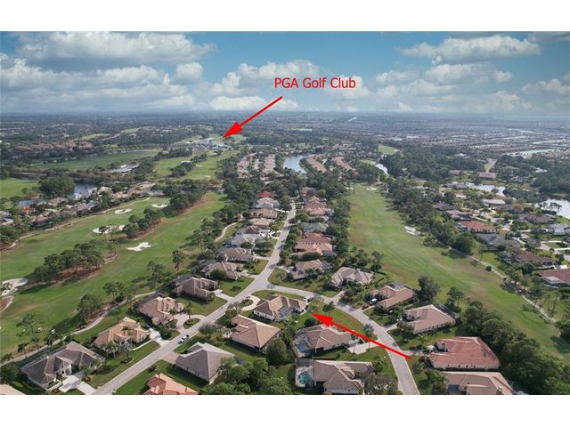 This is a fantastic pool home located in PGA Village! A wonderful gated golf community with lush greenery and a preserve. This home is spacious and features volume ceilings. The kitchen overlooks the pool area and family room. This home is light and bright, a true sunny Florida home. The home is situated on a corner lot with a circular drive in the front and a 2 car garage and large driveway on the side. The home features a spacious primary suite with access directly to the pool. The primary bath feels like a resort spa! This is a terrific place to call home. There is a den/office, that is located directly next to the third bathroom and features a closet which can easily be utilized as a bedroom! The home features a standby gas generator! Call today for a showing!