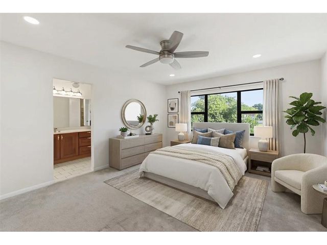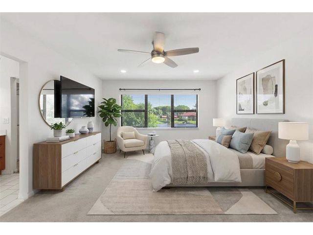 Receive up to 1,500 lender credit with seller's preferred lender. This upgraded townhome presents an exceptional opportunity to experience the comfort & seclusion of townhome living at pricing comparable to area condos. Situated in a secure gated enclave, this residence boasts newly installed impact-resistant windows & sliding glass doors, an AC system & water heater (4 years young), & received fresh interior paint w/ contemporary lighting upgrades just 1.5 years back. Features include Ring motion-activated lighting & surveillance cameras at front & rear entries, plus tranquil water views facing the clubhouse & pool area. HOA covers internet service, cable TV, security monitoring, lawn maintenance, ext. pest management, & additional services. Country club & golf memberships are optional.