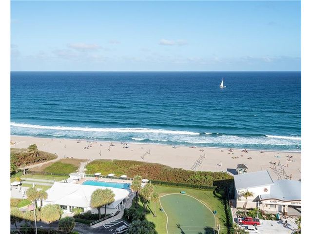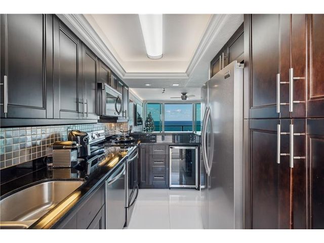 COME TO PARADISE! Gorgeous one-bedroom, 1.5-bath oceanfront condo with panoramic Atlantic views from every room. High-end finishes include granite countertops, porcelain tile floors, and top-of-the-line Frigidaire Gallery appliances. Interior highlights: dry bar, wine cooler, dual sinks, spacious walk-in closet, full-size washer/dryer, plus newer A/C and water heater. Building amenities feature a heated pool, BBQ area with dining, clubhouse, gym, direct beach access, and nearby Deerfield Beach International Pier. Ideally located near Boca Raton and within walking distance to supermarkets, restaurants and the boardwalk, this unit epitomizes luxury coastal living.