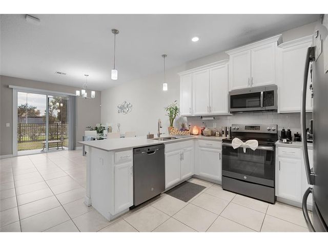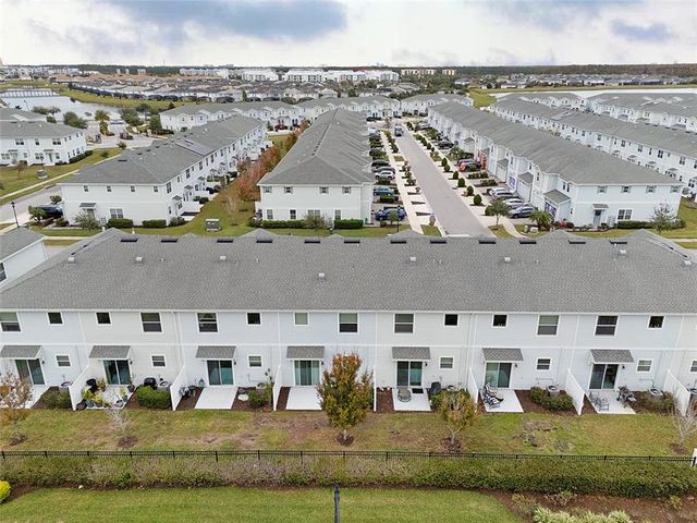 Prime location! This is not a vacation community—short-term rentals are not permitted. Beautiful, well-maintained 3-bedroom, 2.5-bath townhome in the gated community of Story Lake. Features an open layout with a central kitchen offering 42" cabinets and quartz countertops, flowing into the living and dining areas. Sliding glass doors open to a private patio with serene green views. Spacious primary suite with walk-in closet, dual sinks, and large shower. HOA includes internet and cable. Resort-style amenities include pool, fitness center, dog park, playground, and more. Just 5 miles from Walt Disney World and minutes to Disney Springs, shopping, dining, and major highways.