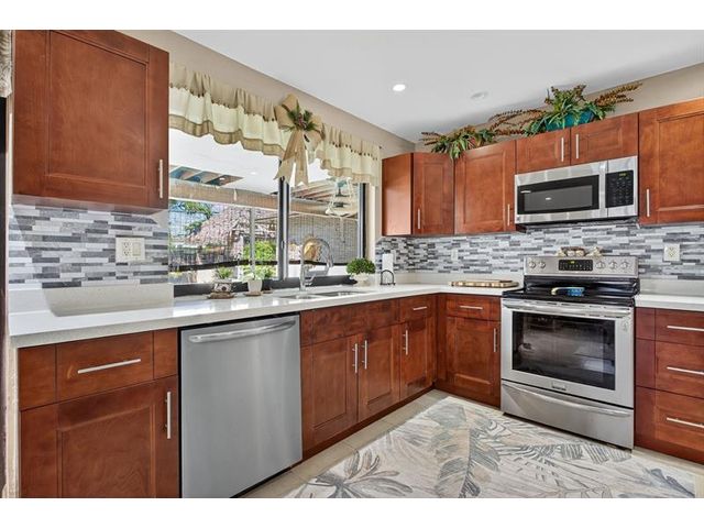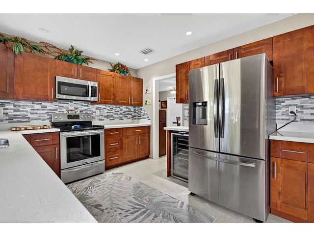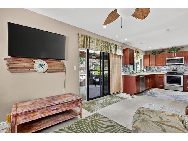 3-bedroom, 2-bathroom home. Dive into your private pool or unwind under the tiki hut, perfect for outdoor entertaining with large coved porch off the kitchen. The property is equipped with impact windows and sliders, tankless water heater and 56 solar panels for energy efficiency. The spacious two-car garage and additional parking offer convenience. Norwood Pines Park located in the subdivision which features brand new pickleball courts, tennis courts, playground, and jogging path. The neighborhood also has great restaurants located along Cypress Rd.