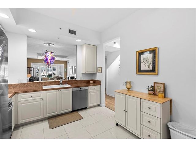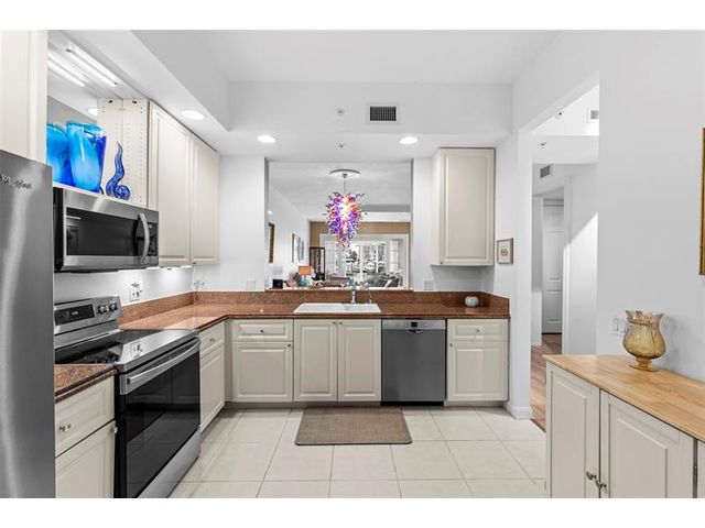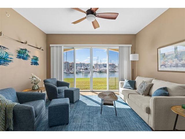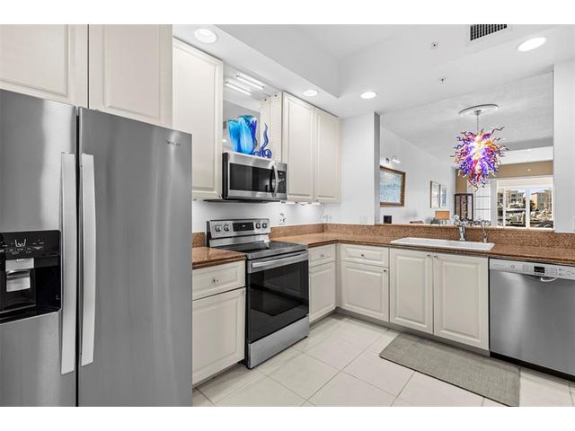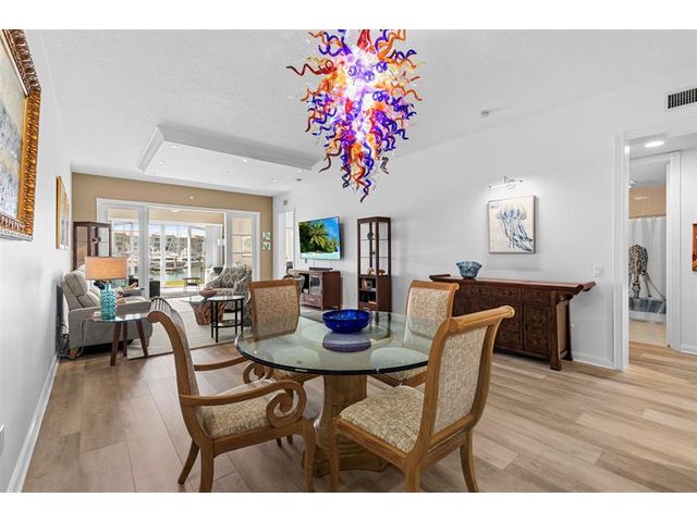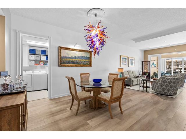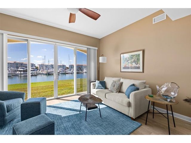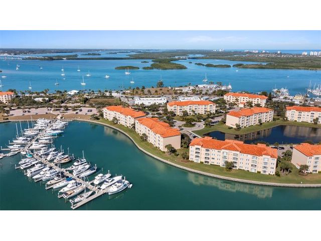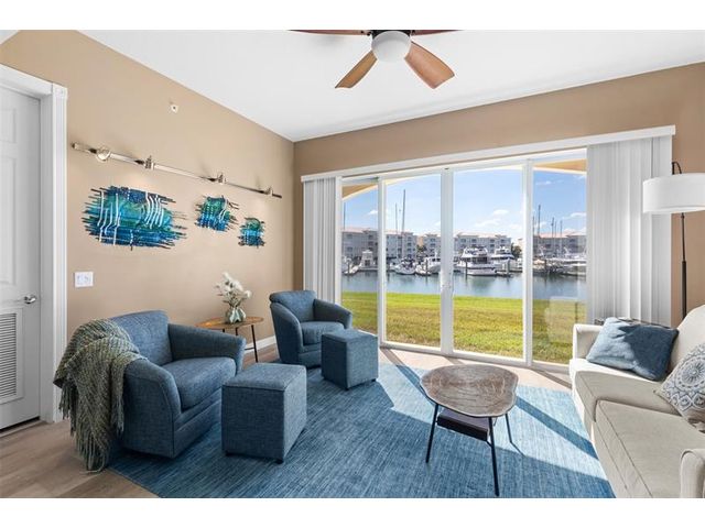 Outstanding value for this beautifully updated condo that's being sold turn-key with stylish furnishings and gorgeous marina views. So many upgrades including a custom ''Chihuly-like'' 5 foot chandelier, several one-of-a-kind fused glass pieces, wide plank luxury vinyl flooring thru-out, built-in wooden pull-outs in kitchen cabinets, stainless appliances including a Bosch dishwasher, custom picture lighting installed showcasing art, and recessed lighting added in living room. These condos were constructed w/ poured concrete walls, impact windows/doors, high ceilings, open floorplans, flex room off laundry room for office/add'l sleeping, 24-hour security guard, & outstanding amenities including club-like pool, gym, walking paths, & clubroom. Walk to the inlet, tiki bars, & d'town Ft Pierce!