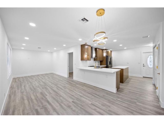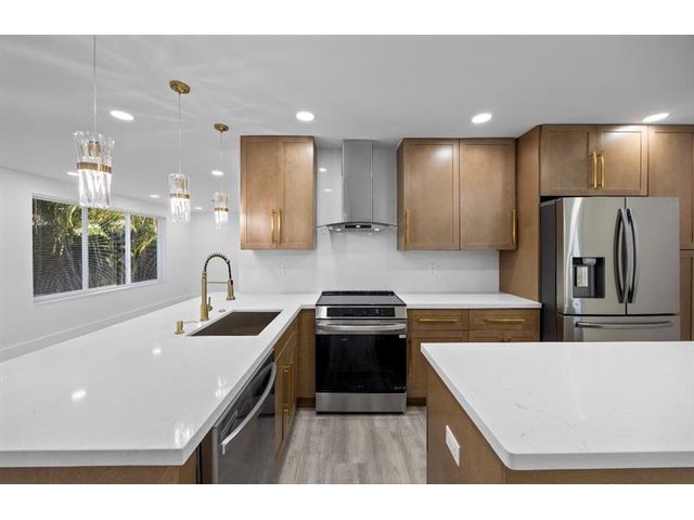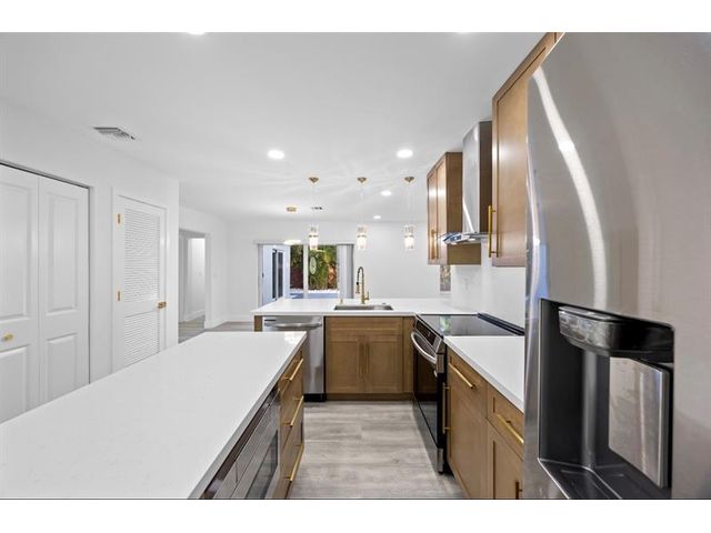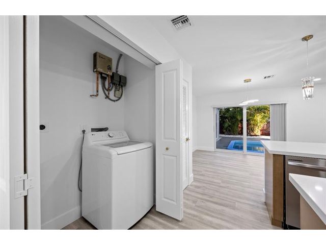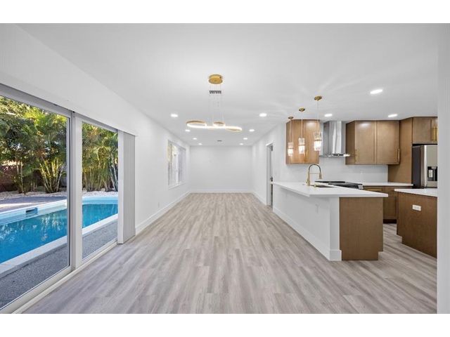Completely remodeled 4-bedroom, 2-bath pool home on a desirable corner lot in a great neighborhood with no deed restrictions. This move-in-ready home features a new roof, new hurricane impact windows, and an open-concept layout perfect for modern living. Enjoy a large custom kitchen with quartz countertops, breakfast bar, and ample cabinetry. Split-bedroom floor plan offers privacy, plus inside laundry for convenience. Beautifully designed bathrooms with contemporary finishes. Spacious indoor living flows to the outdoor pool area, ideal for entertaining and Florida living. Close to shopping, dining, and major roadways. No HOA. A must-see!