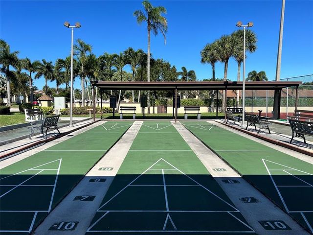 Well maintained clean 2nd floor corner unit with a peaceful courtyard view in desirable Pine Ridge North IV. This is the larger model with eat-in kitchen and laundry room with washer & dryer. Featuring tile throughout, new A/C, GE electrical panel, enclosed balcony, accordion hurricane shutters, assigned & guest parking, new roof. Amenities include heated pool, jacuzzi, tennis, bocce ball court. Centrally located near shopping, dining, golf, PBI airport.