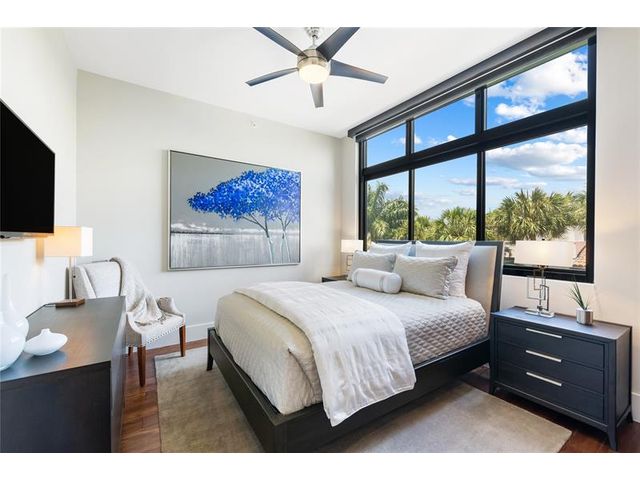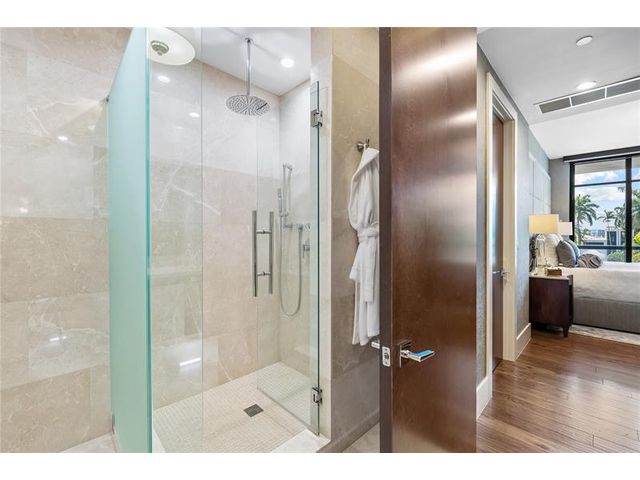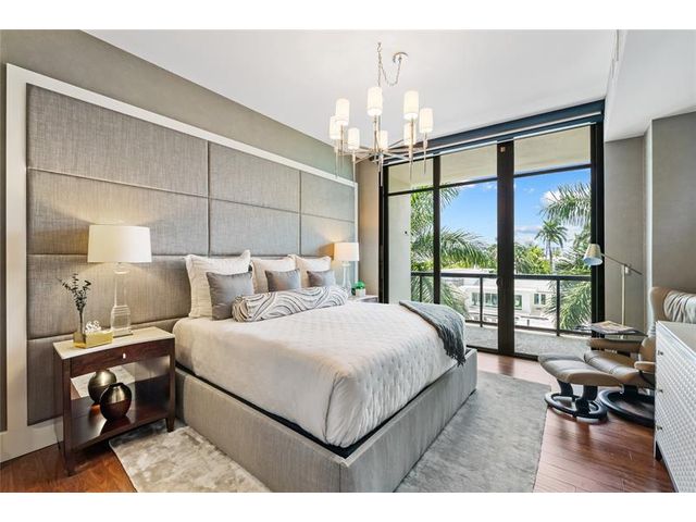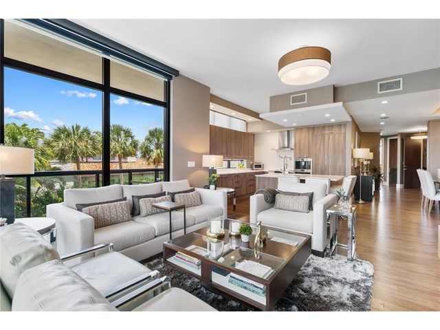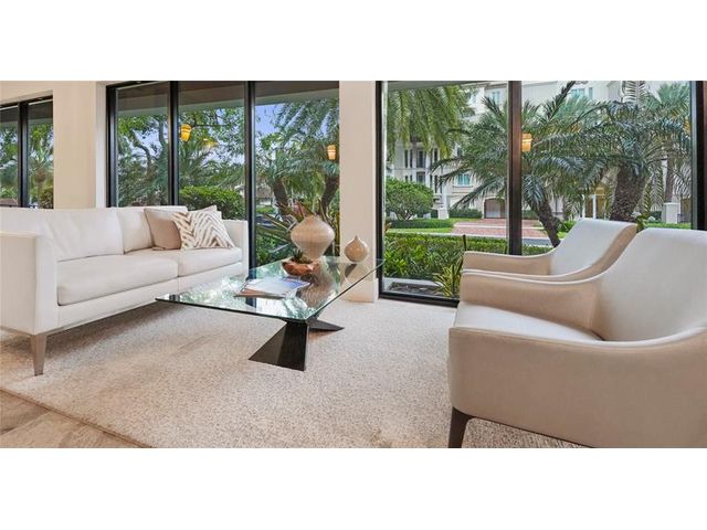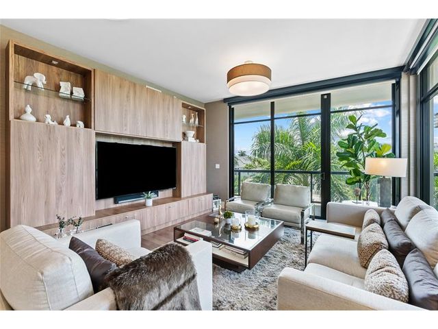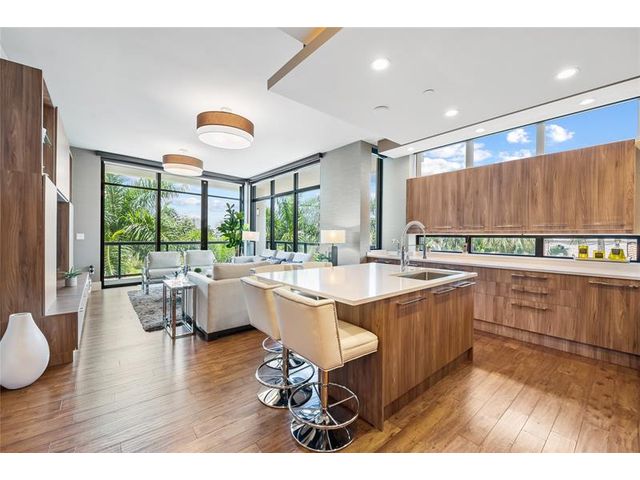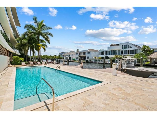Boat slip included! Southern exposure waterfront corner residence delivers exceptional light & water views within a striking curvilinear building by architect Jiro Yates. Corner model includes enhancements of a second prep sink, private storage room, transom upper & lower kitchen windows & a great-room wrapped in glass which opens to over 500' of covered terraces. Private elevator entry reveals custom millwork, 8' walnut doors, high ceilings, upgraded wood floors, motorized shades & designer finishes. Italian cabinetry & vanities, Pompeii countertops, induction cooking w/ pot filler & fully integrated espresso/coffee system complete the kitchen. Side-by-side EV covered parking spaces and a 50' saltwater pool. In coveted Bayview school district, just off the Intracoastal and near the beach.