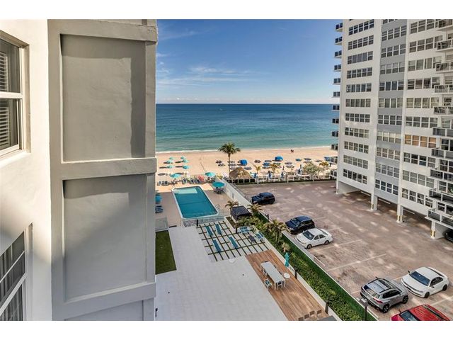 Rarely available spacious 4 stack unit conveys with Covered Parking! Enjoy Southeast Ocean Views from this spacious 1 Bed/1.5 Bath condo offering a peaceful resort lifestyle. Tastefully updated, fully furnished, this open floorplan features quartz countertops, a breakfast bar, S/S appliances, washer and dryer, vinyl flooring throughout, plantation shutters and a Murphy bed. Ample closet space plus a storage unit conveniently located on the same floor! Amenities include a heated pool, brand-new paver patio, new glass railings, BBQ area, billiards room, fitness center, and social room. Mandatory certifications completed and FULLY RUNDED RESERVES for peace of mind. Within walking distance to shopping, restaurants, Lauderdale by the Sea and close to highways. Don't Miss This One!