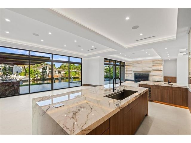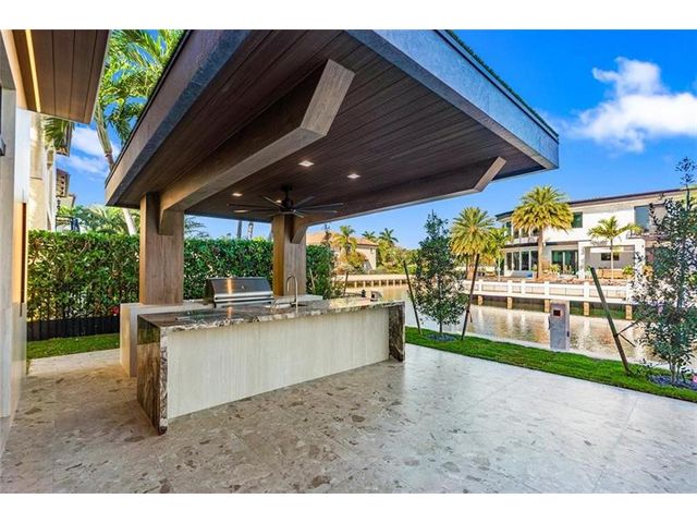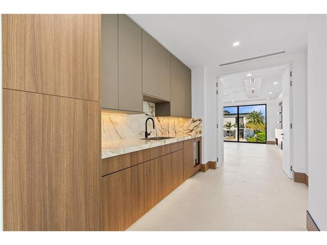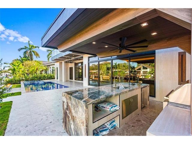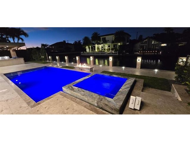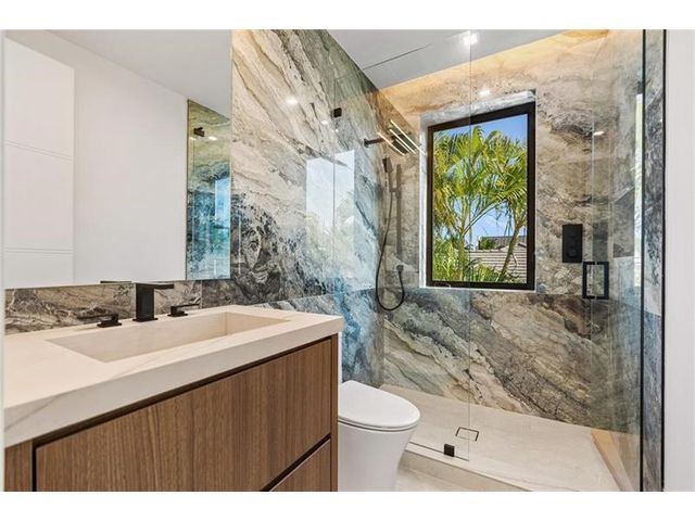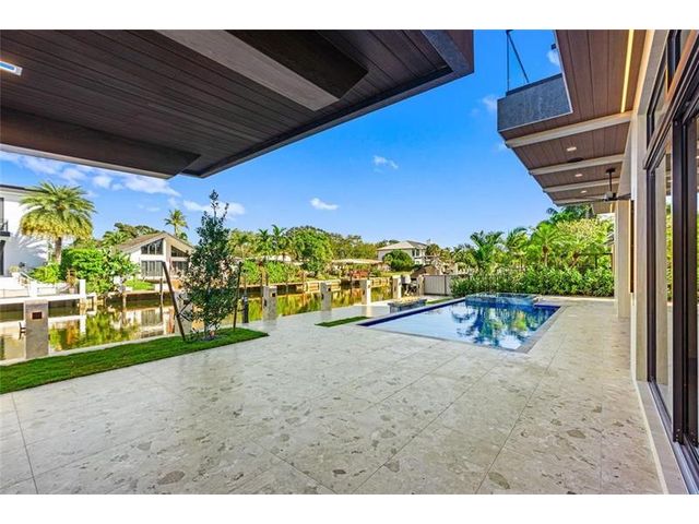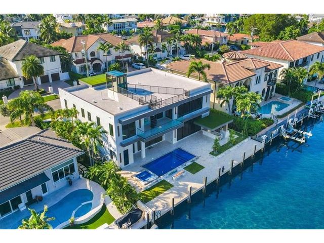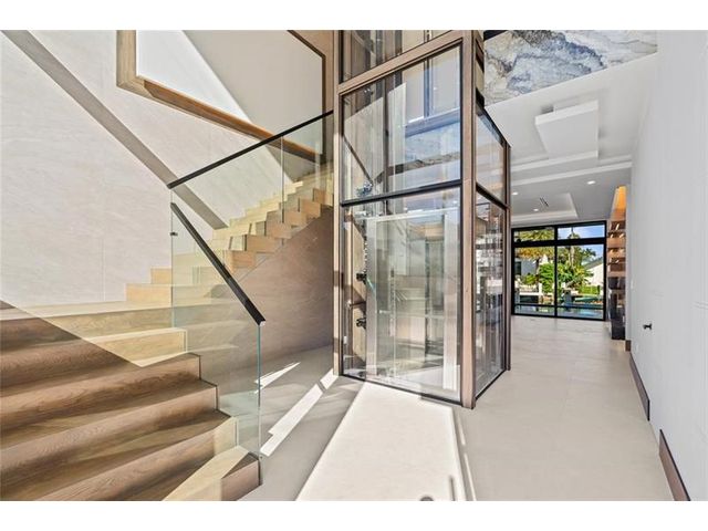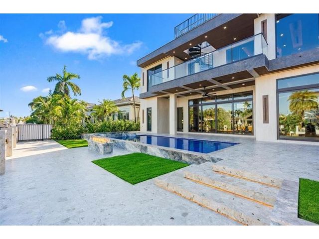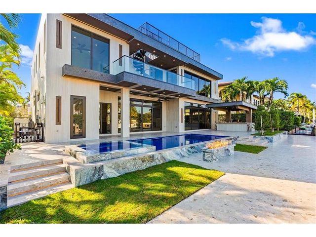 This newly constructed waterfront modern home by Soverns Developers combines luxury with a prime location and a newly constructed 80' seawall. Designed by the award-winning Barretta and Associates, the residence boasts architectural excellence with 5 bedrooms, 5 full bathrooms, and 2 half bathrooms. The main suite offers a private balcony, while the VIP suite ensures ultimate comfort. A tastefully appointed home office and a chef-inspired kitchen with Wolf and Sub-Zero appliances elevate the interior. A 3-stop custom glass elevator connects each floor, leading to a rooftop terrace with breathtaking views. Outside, enjoy a custom pool, spa, and a covered terrace with a built-in summer kitchen, ideal for outdoor entertaining. A 3-car garage adds convenience to this home of pure elegance.