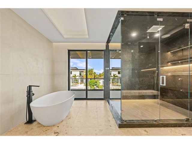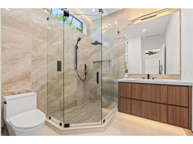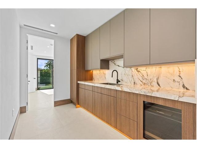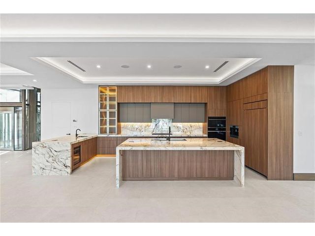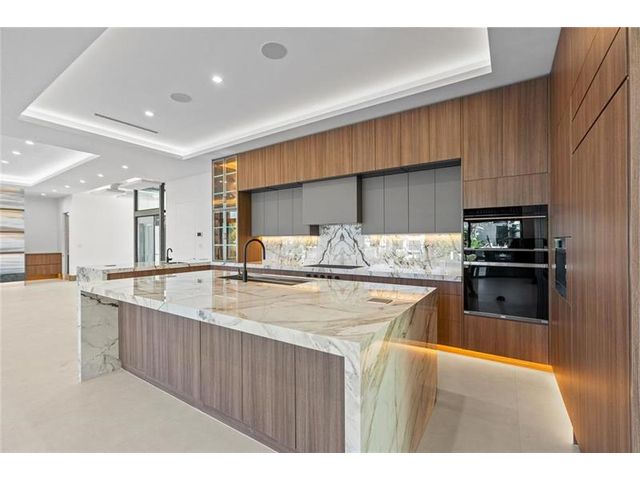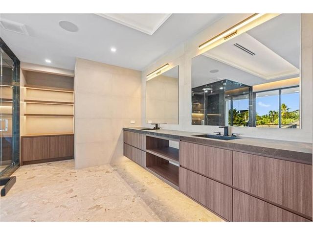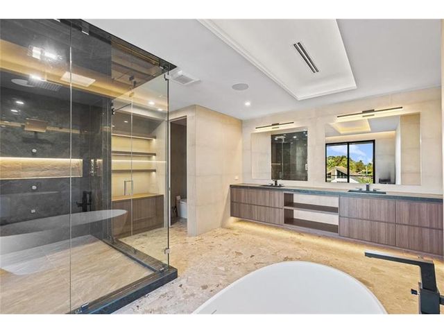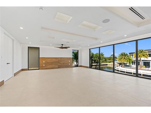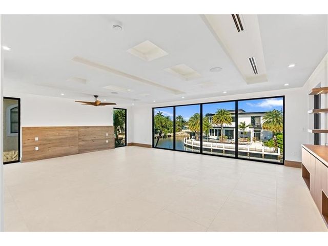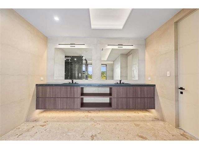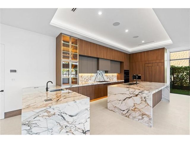 This newly constructed waterfront modern home by Soverns Developers combines luxury with a prime location and a newly constructed 80' seawall. Designed by the award-winning Barretta and Associates, the residence boasts architectural excellence with 5 bedrooms, 5 full bathrooms, and 2 half bathrooms. The main suite offers a private balcony, while the VIP suite ensures ultimate comfort. A tastefully appointed home office and a chef-inspired kitchen with Wolf and Sub-Zero appliances elevate the interior. A 3-stop custom glass elevator connects each floor, leading to a rooftop terrace with breathtaking views. Outside, enjoy a custom pool, spa, and a covered terrace with a built-in summer kitchen, ideal for outdoor entertaining. A 3-car garage adds convenience to this home of pure elegance.