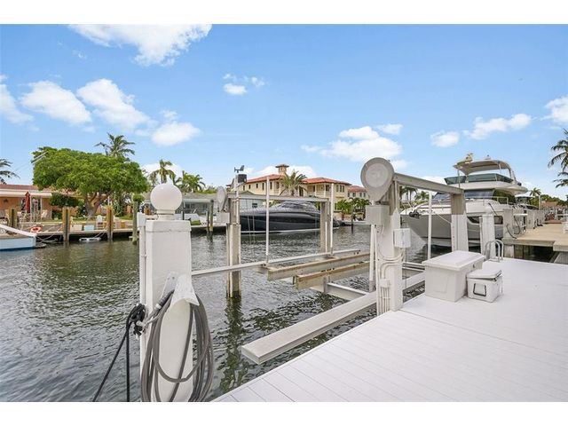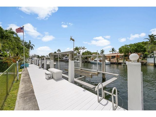 Nestled in a cul-de-sac in prestigious Hillsboro Harbor, this home offers a prime location for avid boaters. Enjoy stunning views with a southeast exposure, making this an exceptional investment opportunity in this highly sought-after area. The property features an an 85-foot seawall with a 75-foot dock and 12,000 lb boat lift, just 2 homes from the Intracoastal Waterway and only 5 minutes to the Hillsboro Bridge. Inside, you'll find a gorgeous 3-bedroom, 2.5-bathroom home, complete with an impressive 15' x 30' pool featuring a beach entry and a 10-foot waterfall. The home also includes an oversized 2-car garage and a circular driveway for added convenience and curb appeal. [Note to residential developers & builders: Home and pool are built on pilings on a 85' x 120' lot]