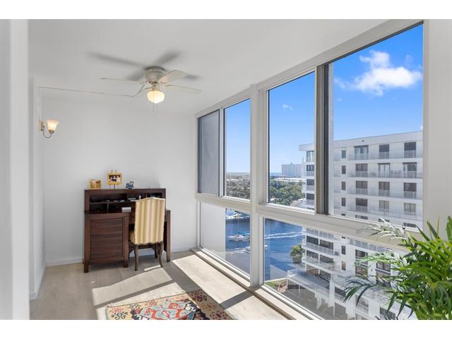 Amazing high floor, southern exposure, large 2/2 condo with floor to ceiling impact windows overlooking the canal below, downtown to the southwest and the ocean in the distance above 3 story height restricted, Lauderdale By The Sea. Porcelain floors, two walk-in closets, and each bedroom having an ensuite bathroom. Garage parking, fiber optic internet and television service through Hotwire included in the maintenance. 2 pets under 15 lbs are welcome. Super solid building with concrete block walls between every unit. New roof. Amazing walkability to 3 direct Intracoastal restaurants and just over the bridge from Lauderdale By The Sea.