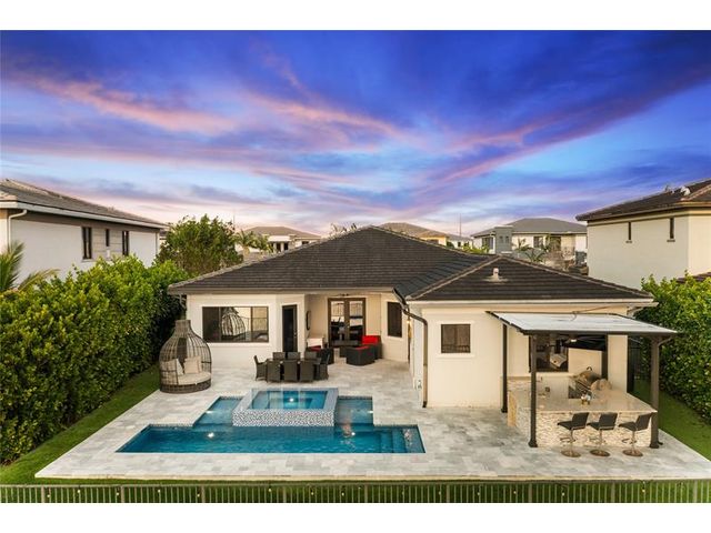 Over $150k In Updates At Your New Dream Home! Popular Angel Tri-Split Model Floorplan w/4 Full Beds, 3 Baths, Fenced-In Patio Oasis w/Newer Heated Swimming Pool w/Spa & Sun Shelf, Summer Kitchen w/Pergolia, Bar w/More Located On A Waterfront Lot w/3-Car Garage & Dual Driveways. Chef's Kitchen w/Quartz Counters, Gas Cooking, Breakfast Area, Dual Ovens, & Stainless Steel Appliances. Primary Suite w/Sitting Area, Walk-In Closets, Separate Sinks, Tub & Shower. Impact Windows & Doors & On Gas. Patio w/Astro Turf, Breathtaking Water Views Ideal For Entertaining. 24-Hour Guard Gated Community. HOA Includes Landscaping, Resort Style Amenities, 2 Clubhouses, Fitness Centers, Community Pool & Spas, Basketball & Tennis Courts, & Much More. Close To Shopping, Restaurants, A-Rated Schools & Much More!
