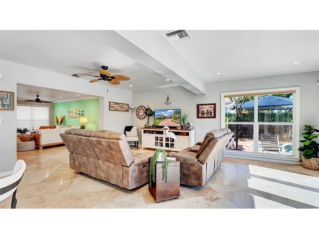 Boaters –Straight to the ocean! 2408 sq 3/2 updated sitting on 75’. Remodeled kitchen with natural gas, dining, living and a huge family room. Brand new AC, full impact glass, newer dock with reinforced pylons and seawall adding 2’ in additional height and width. South east facing (for sun all day) heated saltwater pool. Retractable sunshades on the front and the back, 22kw generator, PVC fencing, additional sheds, the entire interior is newly panted, smoothed walls and all the plumbing has been replaced. This home is turn key, nothing to do! Come and enjoy all Pompano has to offer and your boat!! Out of all the homes in Pompano Isles this one is in the best condition.