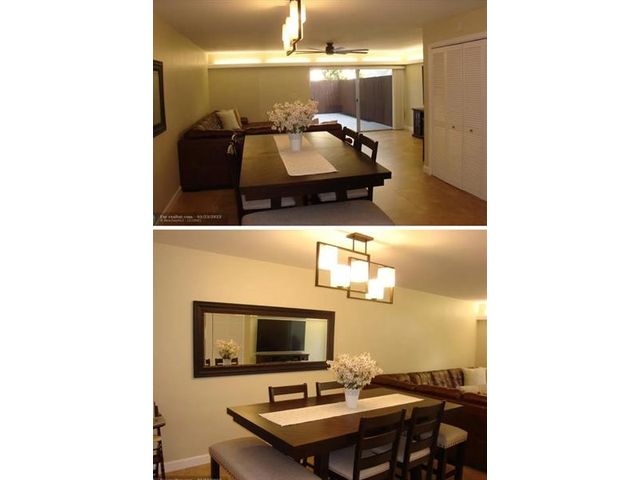 This townhouse is a "Must See"! Move in condition, bright and open with a beautiful layout. Every space accounted for with tons of storage! The Kitchen boasts Granite countertops, Soft Close cabinets and Stainless Steel appliances. There is a half bath on the main floor. Great big glass sliding doors which overlooks a lovely backyard which is fully fenced for privacy! A wooded staircase leads to the second floor to three bedrooms which all have spacious closets. There are two full bathrooms. The HOA includes water, roof, outside insurance and outside maintenance. Comes with hurricane shutters. This townhouse is truly a Gem...come by and take a look!