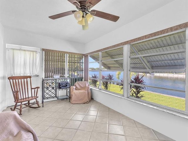 Welcome to this delightful and spacious 1,375qf water view single family home. This oasis offers the perfect blend of comfort, 2-bedrooms,1-bath+Florida room with new laminate flooring thru the living, dining, hallway & bedroom. Tiled flooring on bathroom, kitchen, laundry, and Florida room. Picture enjoying your morning coffee in the Florida room, with its captivating water views and lush garden brimming with tropical splendor. Professionally landscaped, with New appliances includes washer, dryer, refrigerator, stove, smoke detectors, and garbage disposal. Tile roof 2015,AC 2016, upgraded 200-amp electrical panels. Located near majors highway ,shopping centers and different amenities. Call today!!!!!