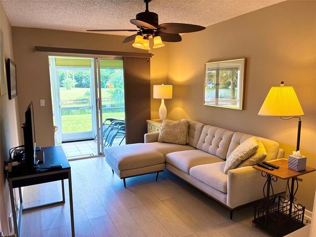 Beautiful CORNER, WATER VIEW, 1st Floor, 2 Bedroom, 1.5 Bath in High Rise Bldg. TONS OF NATURAL LIGHT! Located in active adult community in the heart of Deerfield Beach. WELL MAINTAINED BUIDLING! 40 YEAR INSPECTION COMPLETED. NEW ROOF - 2025! Bahama Shutters thru-out. New Stove, HWH & Electrical Panel, 2023. Ceramic Tile Thru-Out. New laminate flooring in bedrooms. Convenient parking located in the front of the condo! Freshly painted. Patio has extra storage closet, w/ roll down shutters, AND EXIT DOOR! CVE offers resort style amenities including a lavish clubhouse, 1,500 seat theater, premier performances, shuttle buses, state of the art gym, pickleball, tennis, pools, movies & classes. Close to shopping, restaurants & beach. Assoc claims 55+.