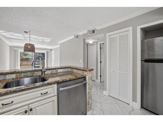 WOW! Beautiful first-floor condo in Cypress Bend with impact windows and crown molding. Park right at your front door and enjoy a bright, open kitchen, screened porch plus extra patio, and serene water view with lots of privacy. Washer and dryer included. Pet-friendly community with resort-style amenities: clubhouse, fitness center, heated pool, billiards, and more. Prime location near Isle Casino, I-95, and walking distance to Walgreens. Move-in ready and well-maintained—schedule your showing today! Enjoy lush landscaping, walking paths, tennis courts, and a vibrant lifestyle close to beaches, shopping, and dining. Perfect for seasonal or year-round living!