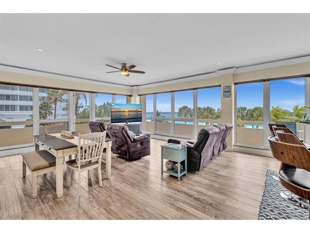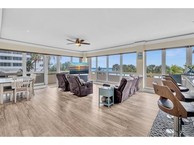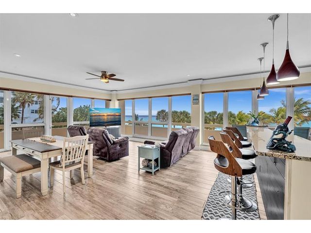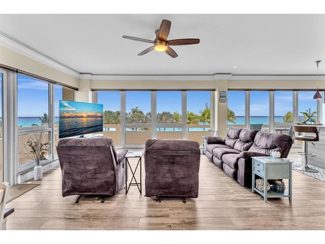 Here it is !!! This unit is the front condo SMACK on the Ocean - Wake up to fabulous sunrises from this CORNER unit with Floor to ceiling windows ! CEILINGS ARE OVER 9 feet, a rare find on the beach ! All Impact Windows too-Unit is in immaculate condition with lovely cabinetry and and top applicances ! Nice and spacious and Big closets too ! Pats are allowed with Service papers !