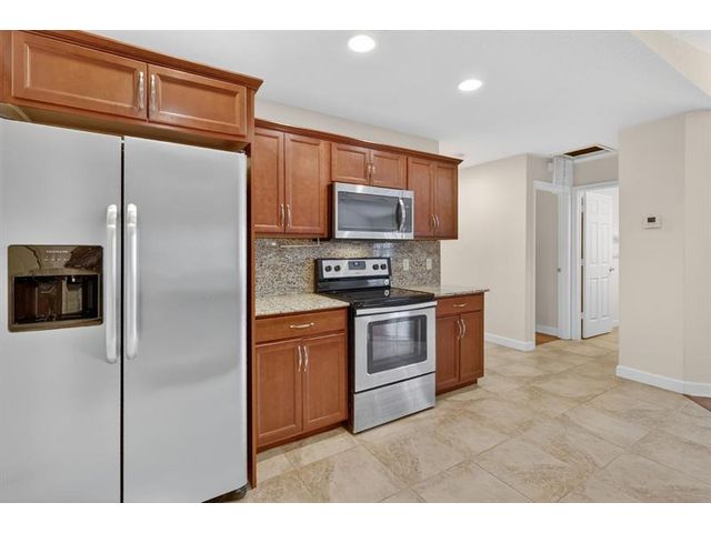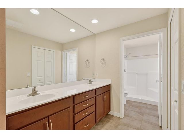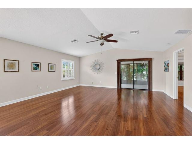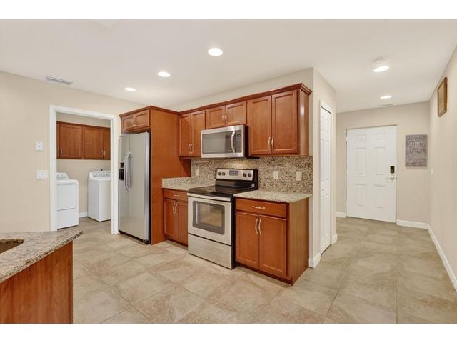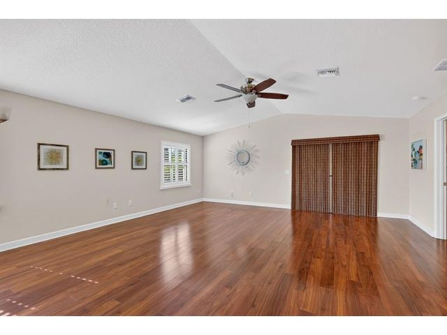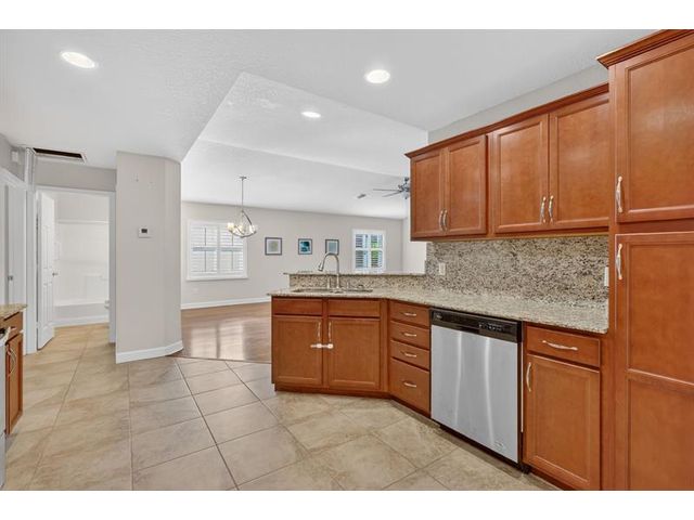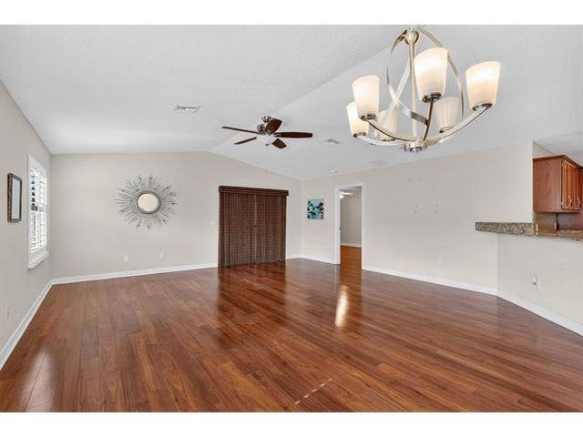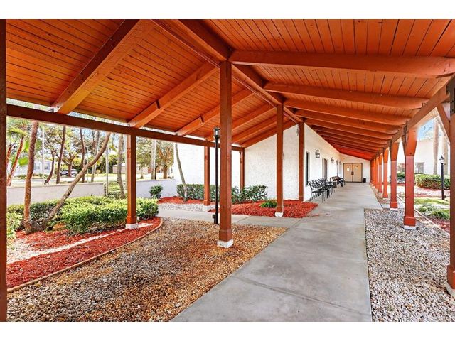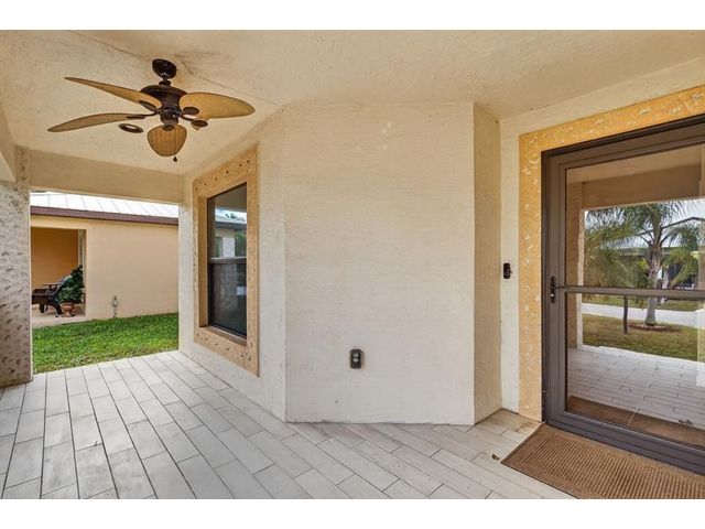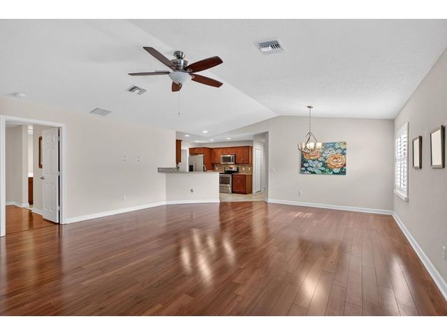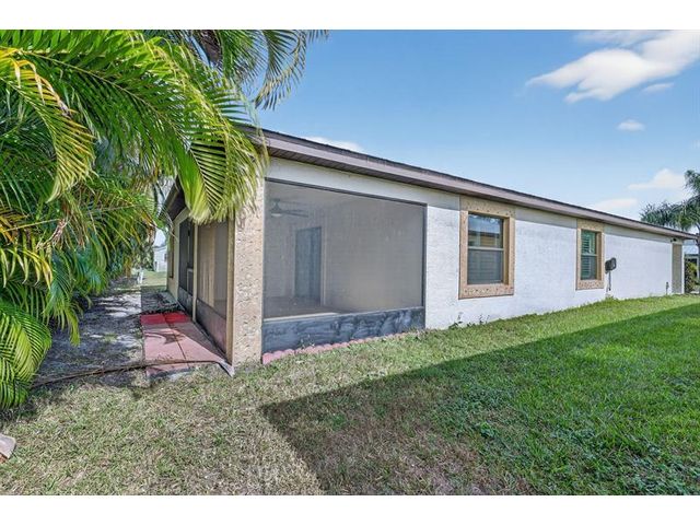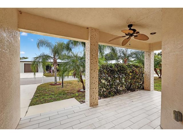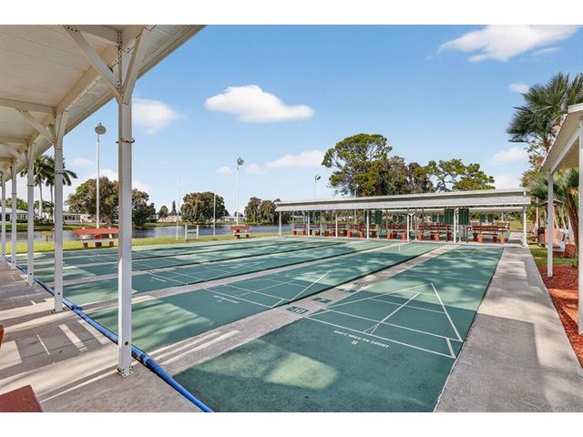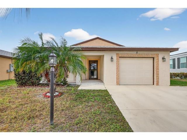 Well maintained single family home in the sought after 55 plus Spanish Lakes One community. This lovely home features 2 large bedrooms. Laminate floors in living areas and both bedrooms. Kitchen has granite countertops, backsplash and stainless steel appliances. Master bathroom has dual sinks and huge walk-in closet. Both bathrroms have bath fitters. Inside utility room with full size washer-dryer. Knockdown walls and ceilings. Metal roof. CBS construction. Huge screened patio. 1 car garage with 3 car driveway. Peaceful neighborhood. Lot rent covers all amenities, lawn care ,trash removal and sewer. Active lifestyle with resort amenities which include full calendar of activities, clubhouse, 2 pools, tennis, pickleball, fitness center and more. Great location close to shopping. Shows great.