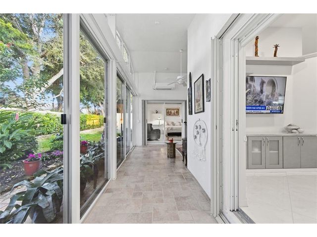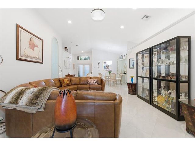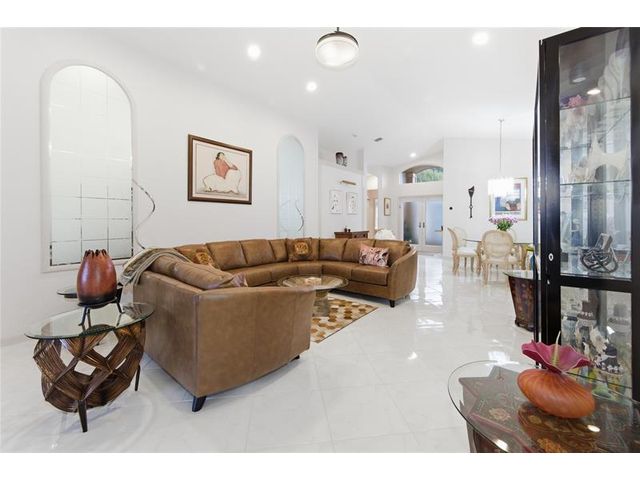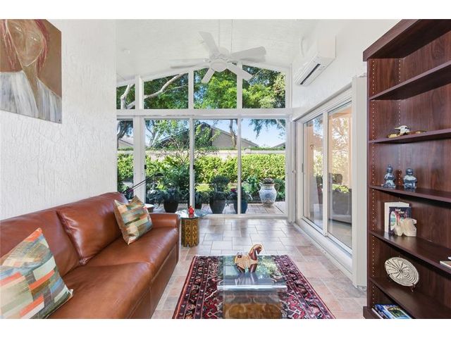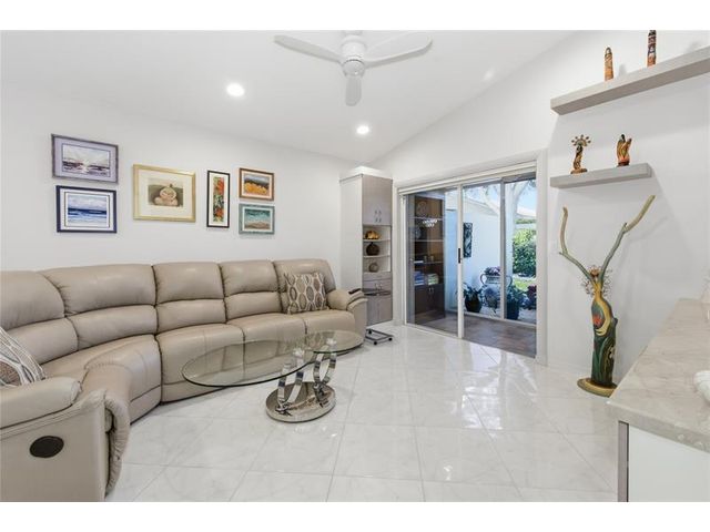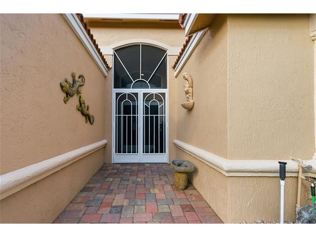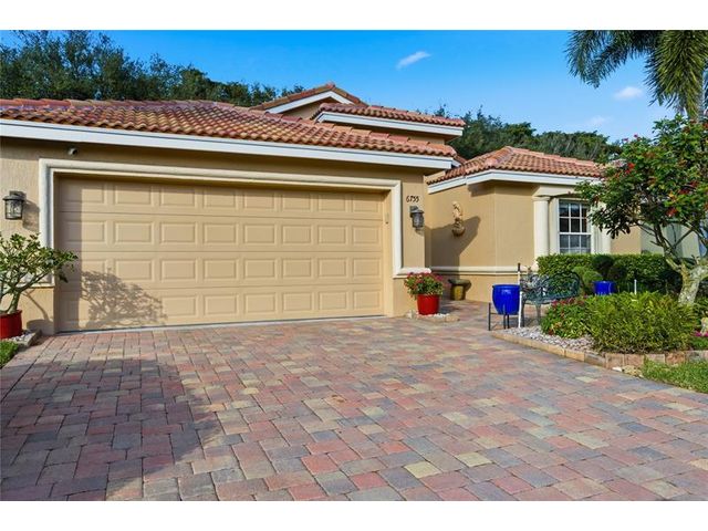 Welcome to this beautifully maintained 3-bedroom, 2-bath home located in the prestigious 55+ community of Villa Borghese. Boasting spectacular curb appeal, this residence features a new roof, new matching driveway pavers, and a hurricane-impact glass front door. Lush tropical landscaping enhances the cozy atmosphere from the moment you arriive. Inside, vaulted ceilings add height and architectural interest, creating a bright and airy living space. The impact-glass bonus room offers additional square footage and flexibility—perfect as an indoor sitting area or relaxed outdoor lounge space. With 1,952 square feet of living space, this home is move-in ready and waiting for its next resident. Enjoy the friendly, active lifestyle for which Villa Borghese is known.