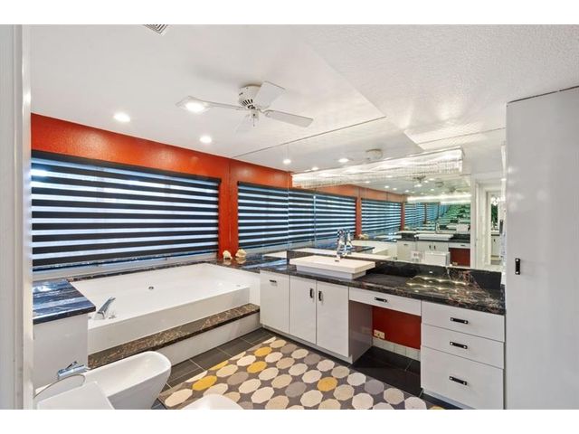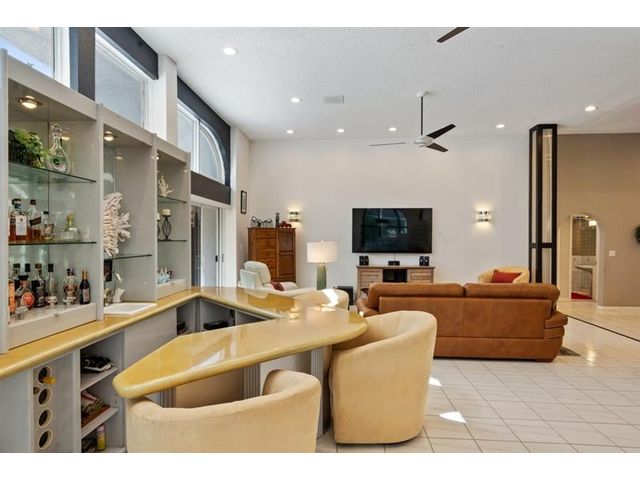 This immaculate 3 B/R 4 Bath SFH w/Oversized Master Bedroom, has 2 Fully updated Master Baths w/Sauna and Spa Tub. Open floor plan with 14' ceilings. Totally updated kitchen w/quartz counters, stainless steel appliances. Impact windows and doors. Complete "COOL ROOF" coating done in 2017. 2 A/C units replaced 2022 and 2023. 2 separate 1 car garages, (both w/impact doors) Custom Wet Bar. Screened patio w/heated pool, Newer Summer Kitchen. Tons of storage and built-ins. Great home for entertaining. Square footage is larger than Tax records indicate. Close to major highways, shopping and restaurants. This home is move-in ready. A MUST SEE!