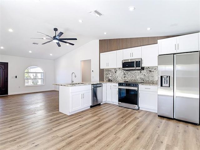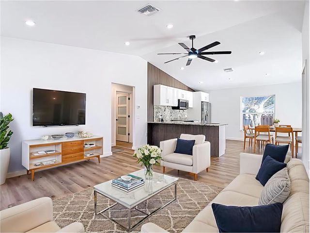This fully remodeled home is ideally located near both the beach and downtown, offering convenience, comfort, and modern upgrades throughout. The property features a large, fenced backyard with plenty of room for a pool or outdoor living enhancements. Recent renovations include hurricane-impact windows, a new metal roof, A/C, water heater, flooring, bathrooms and both electric and plumbing systems. The modern kitchen is equipped with granite countertops and Samsung stainless steel appliances. Every major system and finish has been thoughtfully updated. An additional room provides flexible space that can be used as a home office, den, or bonus room. Move-in ready and centrally located, this home offers an excellent opportunity for primary residence, vacation home, or investment property.