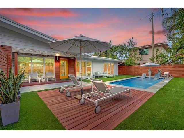 Contemporary Sanctuary: Moments from Private Beach - Discover the pinnacle of coastal living with 3-Bedrooms/2-Bathrooms + private office/den ranch home situated one block from private beach in the exclusive Hillsboro Shores enclave. Surrounded by multimillion-dollar estates, this home fuses Palm Springs modernism w/ the allure of South Florida's coastal charm. Newer saltwater pool w/ premium landscaping. Primary suite w/ a spa-like bathroom, large custom closet, sitting room w/ fireplace, high impact windows & doors, and 2-car garage. The open-plan living/dining areas flow effortlessly into a chefs kitchen. This property includes premium upgrades, metal roof, newer piping and electric, freshly painted & meticulously maintained. This home embodies modern luxury w/ resort-style living.