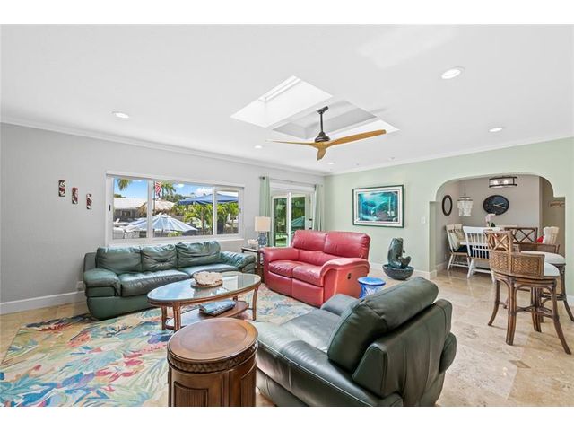 Luxurious waterfront retreat, ideal for boating & water enthusiasts boasting 85 ft of deep water frontage, immediate access to the Intracoastal waterway & no fixed bridges to the Atlantic Ocean. The manicured curb appeal of this property is framed by custom tropical landscaping. The luminous floor plan is enhanced by skylights & sliding doorways blending indoor & outdoor living spaces. This residence offers multiple rooms for entertaining, dining & an open kitchen overlooking the family room, pool & waterway. The primary suite features 2 walk-in closets, a large bathroom & access to the pool & patio. 2 additional bedrms share an updated bathrm. Enjoy S. Florida living at it's finest under the covered lanai with a summer kitchen & tranquil views over the pool & waterway. Sq. ft. from IMAPP