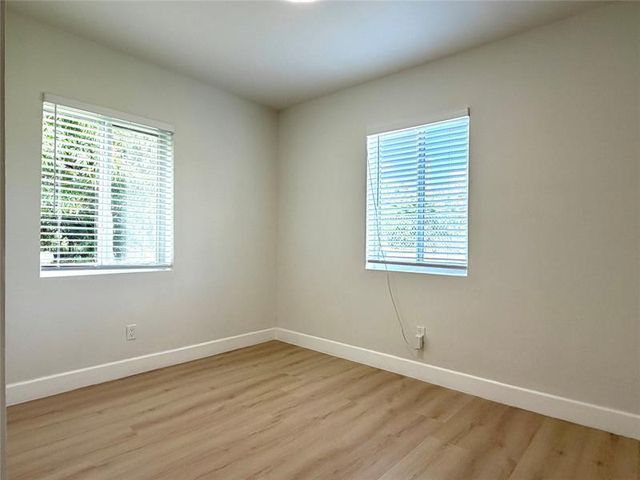 One step away from new construction! This extensively gut-renovated 3-bedroom + den, 2-bath home features major 2025 permitted upgrades, including a full electrical rewire, updated plumbing fixtures, a brand-new roof with warranty, all-new impact windows and doors, and new drywall with premium insulation, offering peace of mind rarely found outside new construction. The home also includes a brand-new kitchen with stainless steel appliances, new AC, two fully renovated baths, luxury flooring, lush landscaping, and off-street parking. It is smart-home ready, with modern security and automation. The large rear yard backs to a lake with no rear neighbors and plenty of room for a pool. Steps from a park, this home offers a nearly maintenance-free lifestyle and is easy to show.