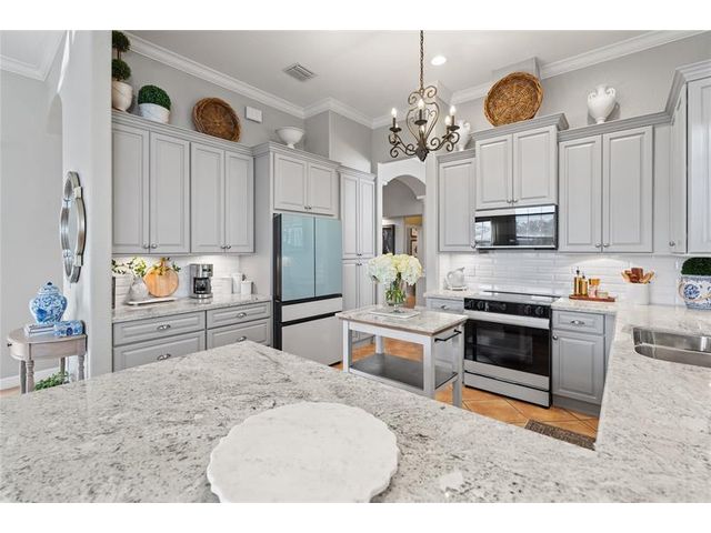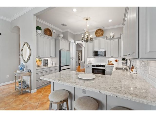 This magnificent 3 BD, 2.5 BA lakefront masterpiece could be your home. The stunning kitchen is a true showpiece, featuring Samsung Bespoke appliances, custom cabinetry for maximum meal prep and storage capacity & stone countertops. The home offers a functional, open layout with spacious rooms, volume ceilings, crown molding, tile flooring & custom window treatments. An extended covered patio functions as a private outdoor living area, perfect for relaxing, entertaining and lake & preserve views. The primary suite has 2 walk-in closets and a beautifully appointed en-suite bathroom. All of the bathrooms have an elevated spa-like aesthetic with custom vanities, quartz countertops & upgraded finishes. Residents of Nautica enjoy top-tier schools and resort-style amenities including a community