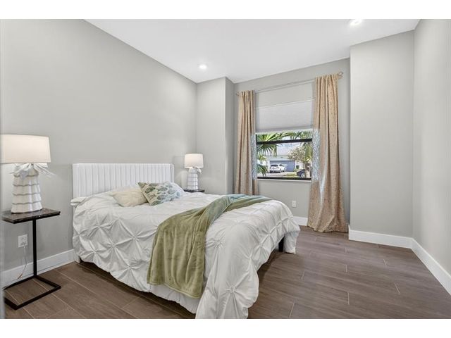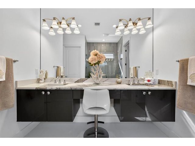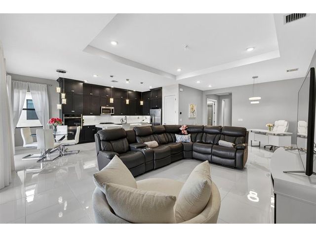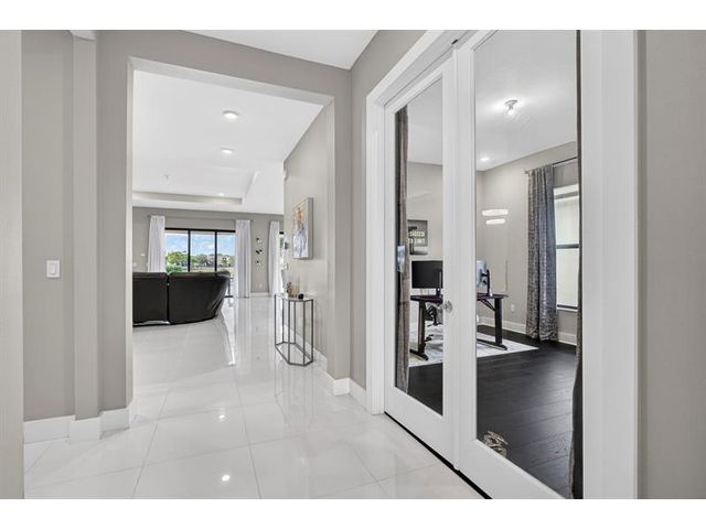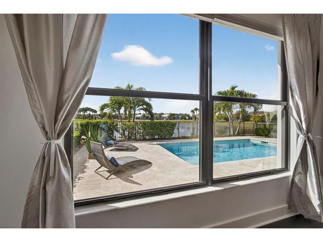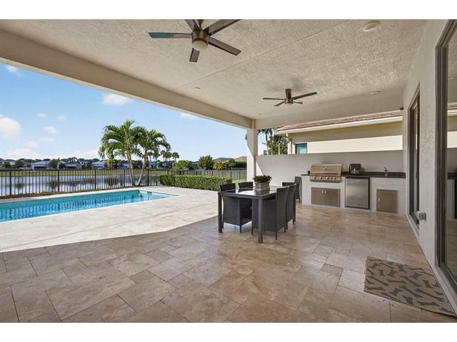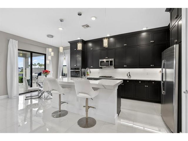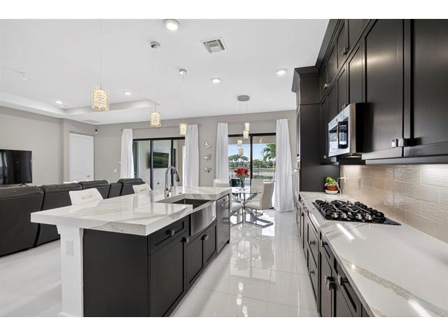 Welcome to a true example of luxury living in the highly sought-after 55+ community of Cresswind. This stunning 3-bedroom, 3-bath residence with an oversized den offers the perfect blend of modern comfort, style, & functionality. Perfectly positioned on a breathtaking lakefront lot, featuring a fenced-in yard, resort-style Saltwater pool, & an outdoor kitchen—ideal for both relaxing & entertaining. Showcasing premium upgrades throughout. Step inside to a spacious open-concept floor plan highlighted by high-end finishes, including designer flooring, custom lighting, upgraded cabinetry, & a gourmet chef’s kitchen, boasting a natural gas range, top-of-the-line stainless steel appliances, & an oversized island with 3 inches Cambria countertops, perfect for gatherings and entertaining.
