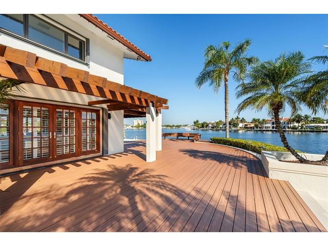Incredible Sunrise Key Point Estate sited on 365 ft +/- of total wrap-around water-frontage with 270 ft +/- of LINEAR MEGA-YACHT DOCKAGE - complete with 3-Phase Shore Power, Deepwater Turning Basin for nearly any size vessel and endless Wide Water Views. All 8,116 total sq ft of this Sante Fe inspired 7-bedroom waterfront estate has been refit over the years to accommodate an entire crew in comfort. APPROVED PLANS & PERMIT READY to build 6,191 sq ft elevated wood dock for the next yachtsmen who wants to save millions on marina/dockage fees, & years waiting on approvals from environmental dept's. Double drive-through garage with extended concrete pad, ideal for yacht provisioning & convenient cul-de-sac location for refueling at home. Separate entrance leads to a 2 BR. apt. with kitchen.