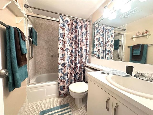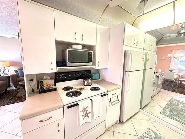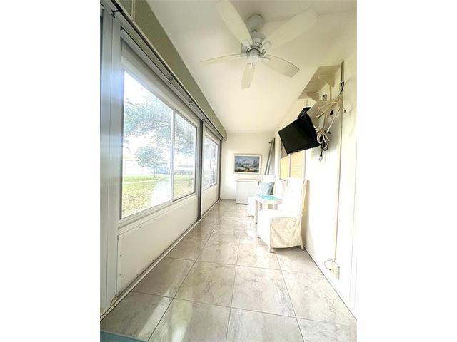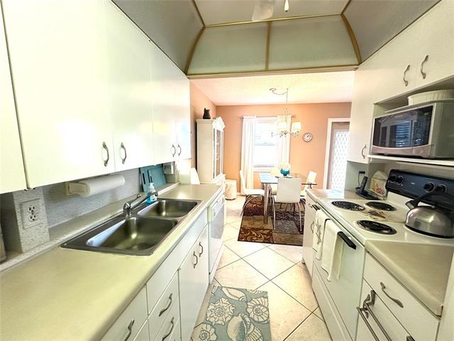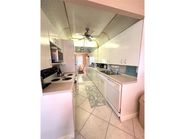 GREAT PRICE for this SPACIOUS 2 bedroom, 1.5 bath 1st fl condo located in a well-maintained 4 story bldg. Features an orig galley kit, tile flrs laid on the diagonal thru-out & ceiling fans in every rm. Primary bathrm has a shower stall w/glass shower doors. Enjoy the encl patio w/sliding plexiglass windows, exit door & roll-down shutters—plus the added benefit that outdoor brick patios are permitted! Being sold FULLY FURNISHED AS IS. Ideally located next to pool & tennis courts & close to Westgate. Excellent value & ready for your personal updates. Enjoy an ACTIVE ADULT LIFESTYLE in this gated comm w/24 hr sec, free busses, pools, tennis, pickleball, putting green, cafe, shuffleboard, AMAZING Clubhouse w/gym, theater, shows, billiards & more! DON'T MISS THIS OPPORTUNITY! ASSOC. CLAIMS 55+