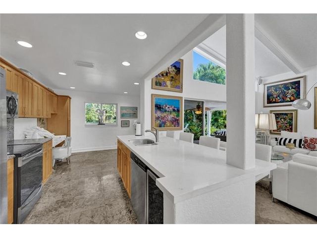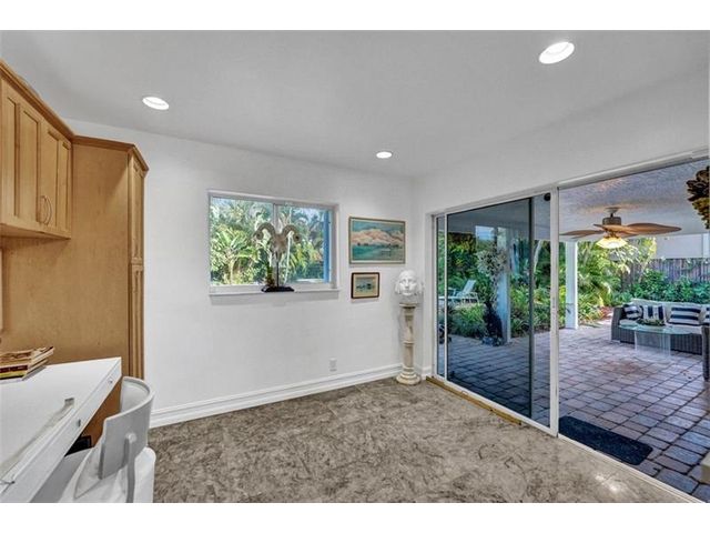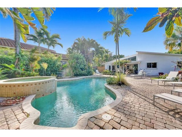 Situated on an oversized 11,526 sq ft lot, this residence is nestled within the exclusive Santa Barbara Estates, less than one mile walking distance to Pompano Beach. Ideally positioned in a rapidly evolving coastal corridor, the home is surrounded by significant luxury development, including the nearby W Residences, Waldorf Astoria, Ritz-Carlton, and Armani Casa. This gated mid-century modern style home offers seamless indoor-outdoor living, with glass doors opening to a large private backyard oasis featuring lush gardens, a pool, and spa. Additional highlights include a two-car garage and recent upgrades such as a new roof (2025) and all impact windows and doors, offering enhanced comfort, security, and long-term value.