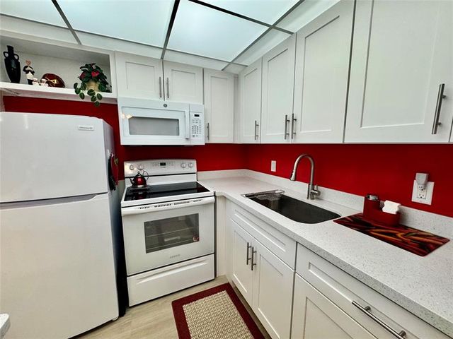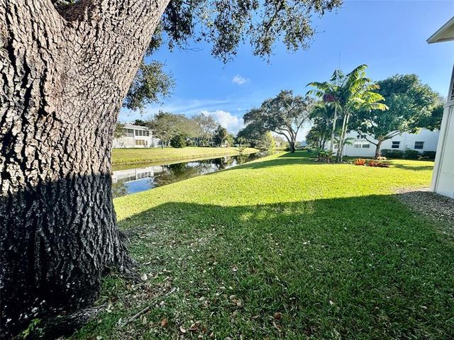 Water view condo-Century Village East. 1 bed and 1.5 bath on the 1ST floor of a Garden building. Closed patio is overlooking the spectacular water view with nice and relaxing shade in the afternoon. Custom fitted liner stall shower. New A/C in the living room installed in 2025. New Electric Panel installed in 2023. Roof replaced in 2025. Impact windows in front and hurricane shutters in the bedroom. Condo is sold furnished(inventory list attached). Paintings and decorative items do not convey. Unit is very clean and ready to move in. 4 miles to the beach! Century Village has so much to offer. Free transportation to the shopping plazas, tennis courts, pickleball and Fitness Club with sauna, outdoor and indoor swimming pools. This beautiful, safe home is waiting for you!