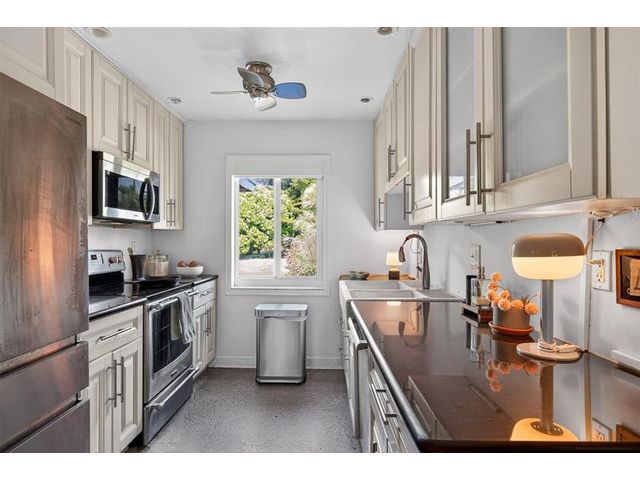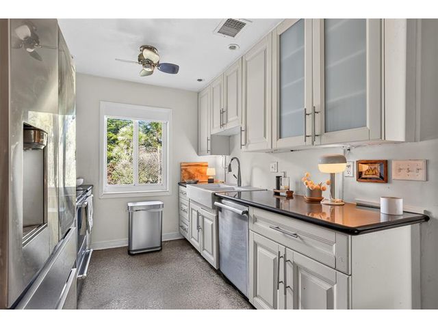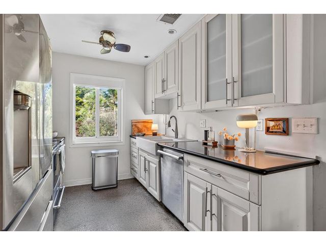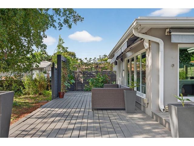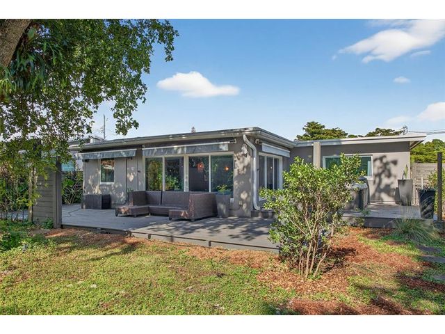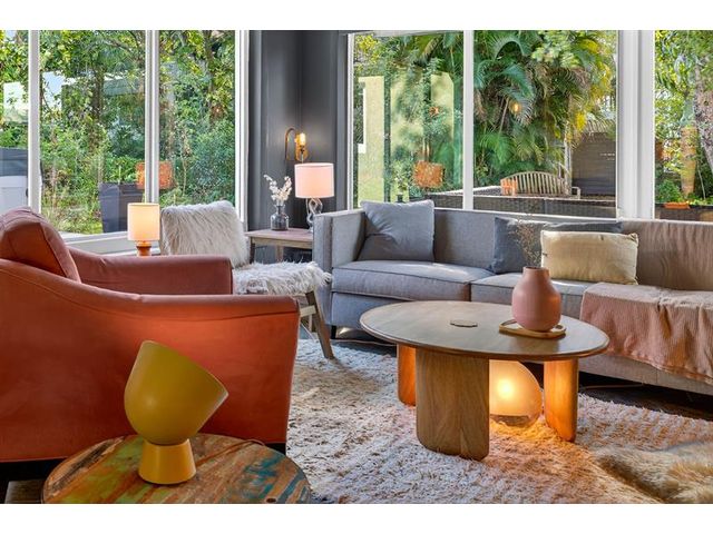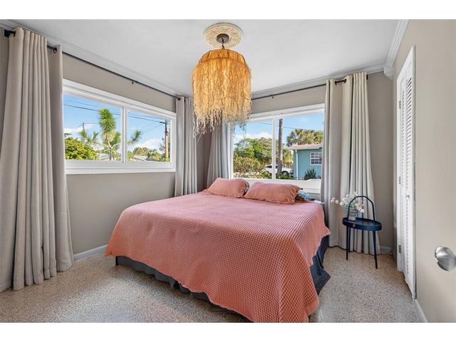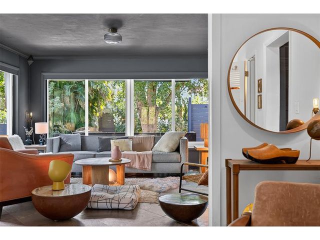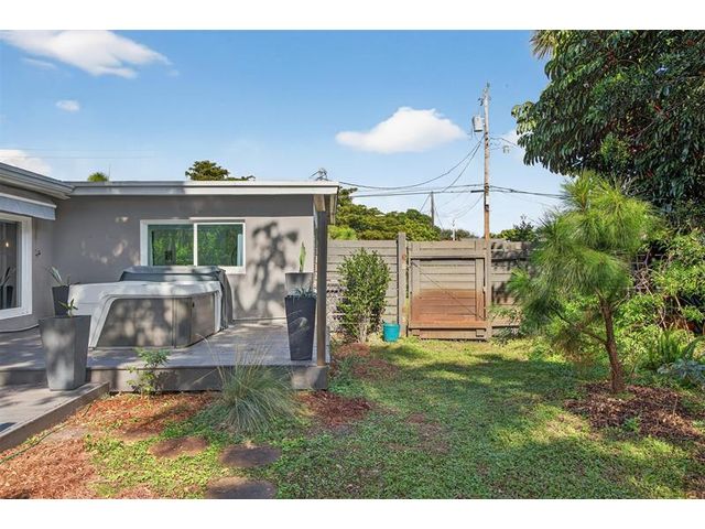Welcome home to your private sanctuary in the heart of Lloyd Estates! As soon as you enter this 2 bedroom plus bonus room, 1 bathroom home you will be bathed in light from the wall to wall windows featuring picturesque views of the back yard oasis. From thoughtful renovated design to mid-century elements, to intentional flow of space; every detail is meant to make you feel at home in your surroundings. Enjoy time in the updated kitchen with farmhouse style sink & upgraded appliances, or head outside to enjoy the mature landscaping & butterfly garden or soak in the new hot tub. This home features hurricane impact windows, beautifully renovated bathroom, terrazzo & slate flooring, well water irrigation system, & even an outdoor shower. Come feel the restorative peace this house has to offer!