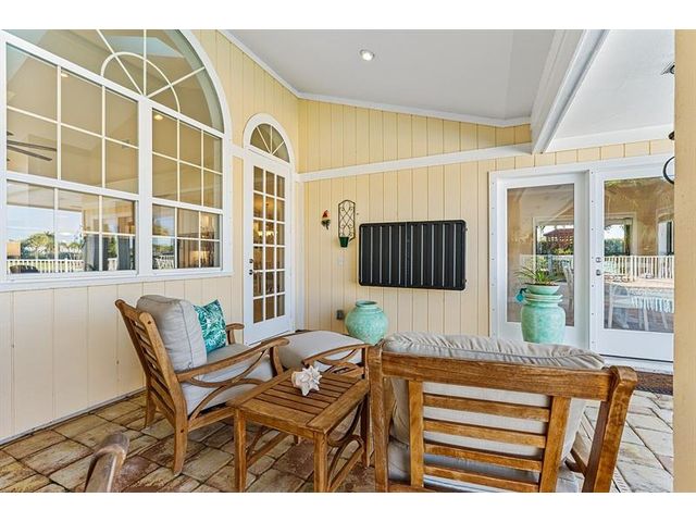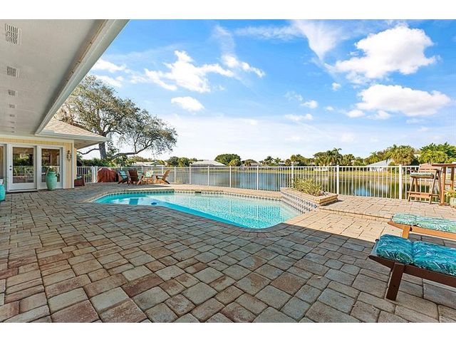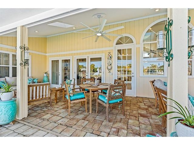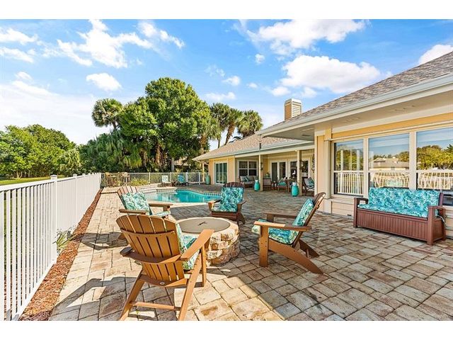 Cache Cay. Over 3,000 square feet of updated living space in this gated island community just minutes from the beach and Ocean Drive. Inside, enjoy an indoor stone fireplace and a spa-like primary suite with soaking tub, walk-in shower, double vanity, and an oversized walk-in closet fit for a queen. The kitchen features a gas range, coffee bar, and top-of-the-line appliances. Outdoor living shines with a pool, fire pit, covered dining area with TV, and a loveseat swing overlooking the lake. Huge laundry room and newer roof. Updated homes this close to Central Beach are rare.