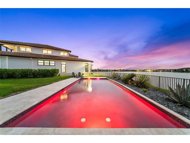 RARELY AVAILABLE CC Homes Nouvelle Model 6 Beds + Loft, 5.5 Baths w/Pool & 3 Car Garage On A Prime Cul-De-Sac Lot, Oversized Fenced-In Waterfront Lot, 5,200 SqFt Under Living. Gourmet Kitchen w/Waterfall Quartz Counters, Gas Stove, Island, Pantry & Sleek Cabinetry. Glass Stairs & Railings In Loft Area. 1st Floor Primary Suite w/Custom Walk-In Closet w/Built-Ins, Dual Sinks, Huge Walk-In Shower w/Roman Tub & Dual Shower Heads. Separate Private In-Law Suite w/Living Room & Full Bed & Bath. Backyard Retreat w/Screened-In Lanai, Summer Kitchen, Expansive Pool Area Overlooking Breathtaking Water Views. Impact Windows & Doors, Mosquito Misting System, Home Security & Automation. 24-Hour Guard Gate. Resort Style Amenities, 2 Clubhouses, Fitness Centers, Pool & Spa, Tennis, Basketball & Much More!