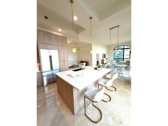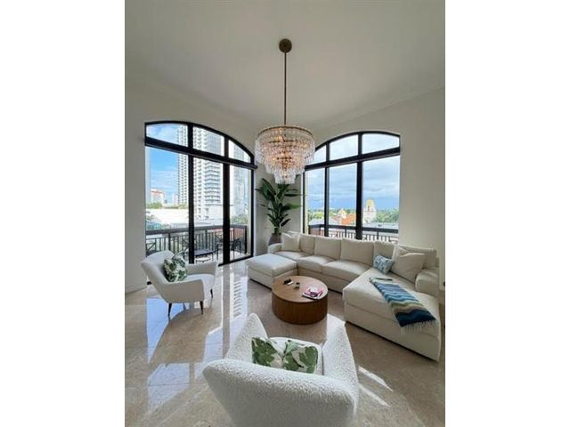 Experience elevated coastal living in this exquisitely renovated luxury condominium located in the heart of Downtown West Palm Beach, with breathtaking views of the intracoastal waterway and the iconic Breakers Resort. Recently redesigned, this residence showcases high end finishes throughout. The expansive open concept floor plan is highlighted by 12 and 14 foot soaring ceilings and 10 foot floor-to-ceiling glass sliders and windows, complemented by transom windows above that flood the space with abundant natural light. Designed for both comfort and entertaining, The designer kitchen features all new, top of the line appliances, custom cabinetry and elegant finishes. The luxurious primary suite is a true retreat, offering generous proportions and a spa inspired